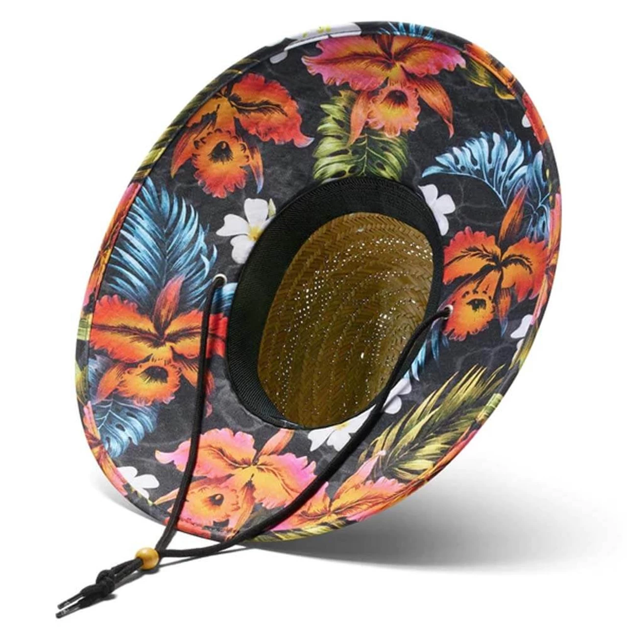 Feel the exotic, Hawaiian vibes this hat brings to life with vibrant colors and beautiful plants. Whether you are kayaking, or laying on that beach soaking up the summer sun, feel like your in paradise every time you put this hat on.
