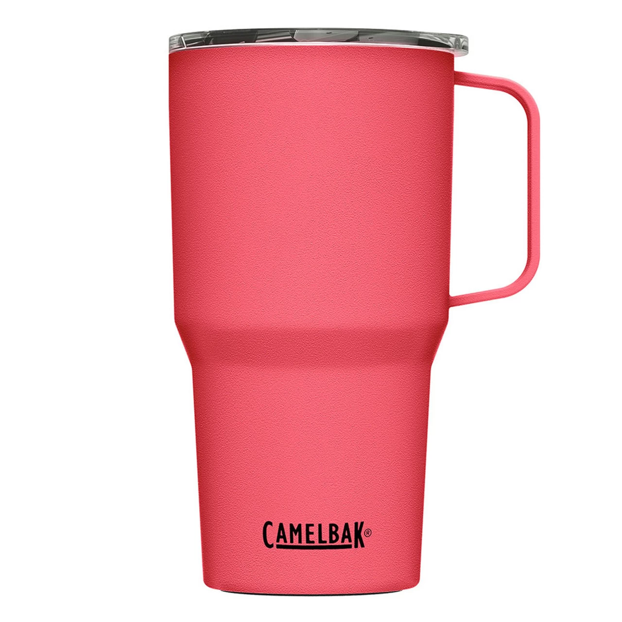 Topped off with a tri-mode lid for variated flow so you can sip on the go, this tall mug by Camelbak has a non-slip silicone pad on the base that provides a soft landing on surfaces to avoid scratches and spills and is featured in a stylish strawberry color.
