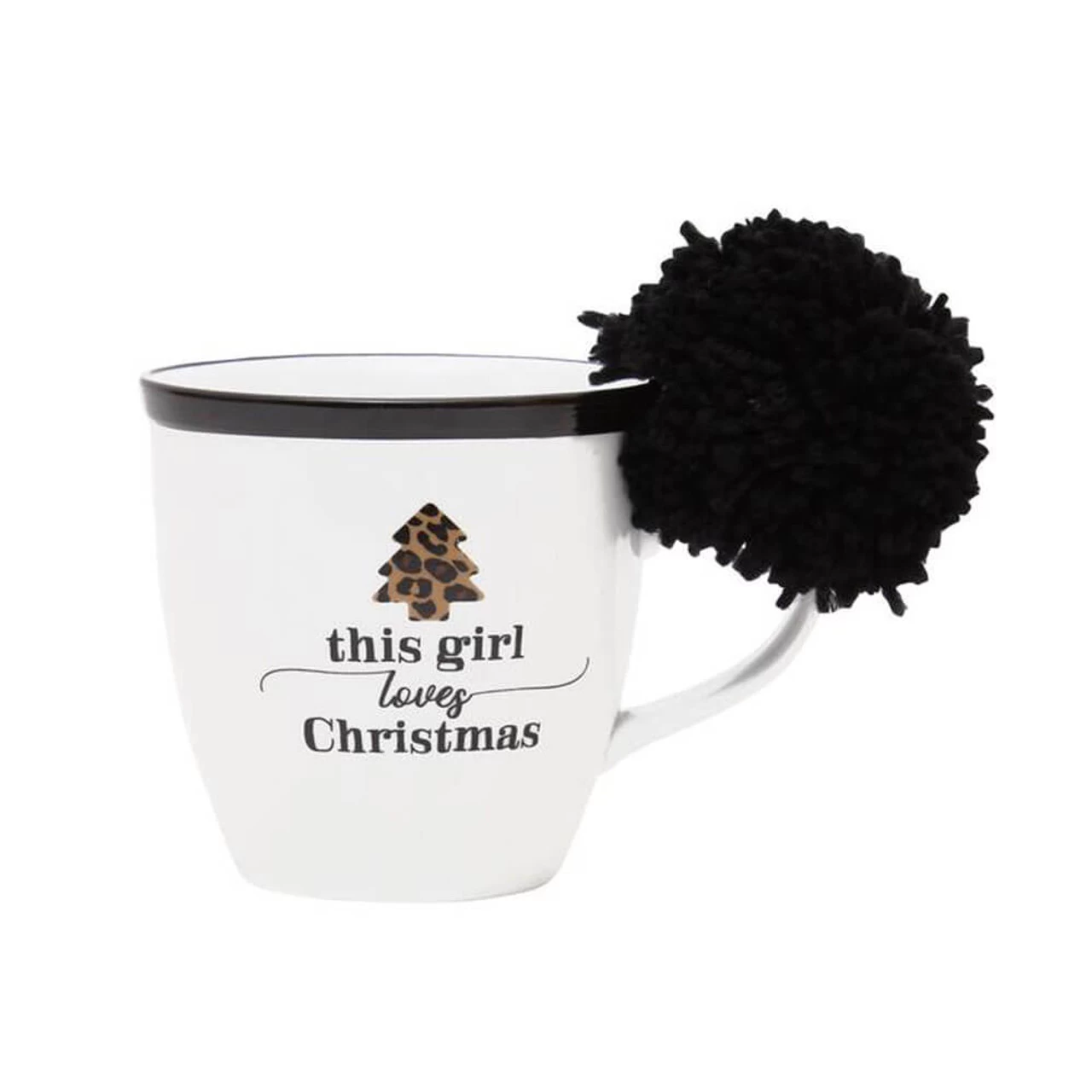 Show your Christmas spirit with this sassy, festive 18 oz porcelain mug that reads, “This girl loves Christmas.”