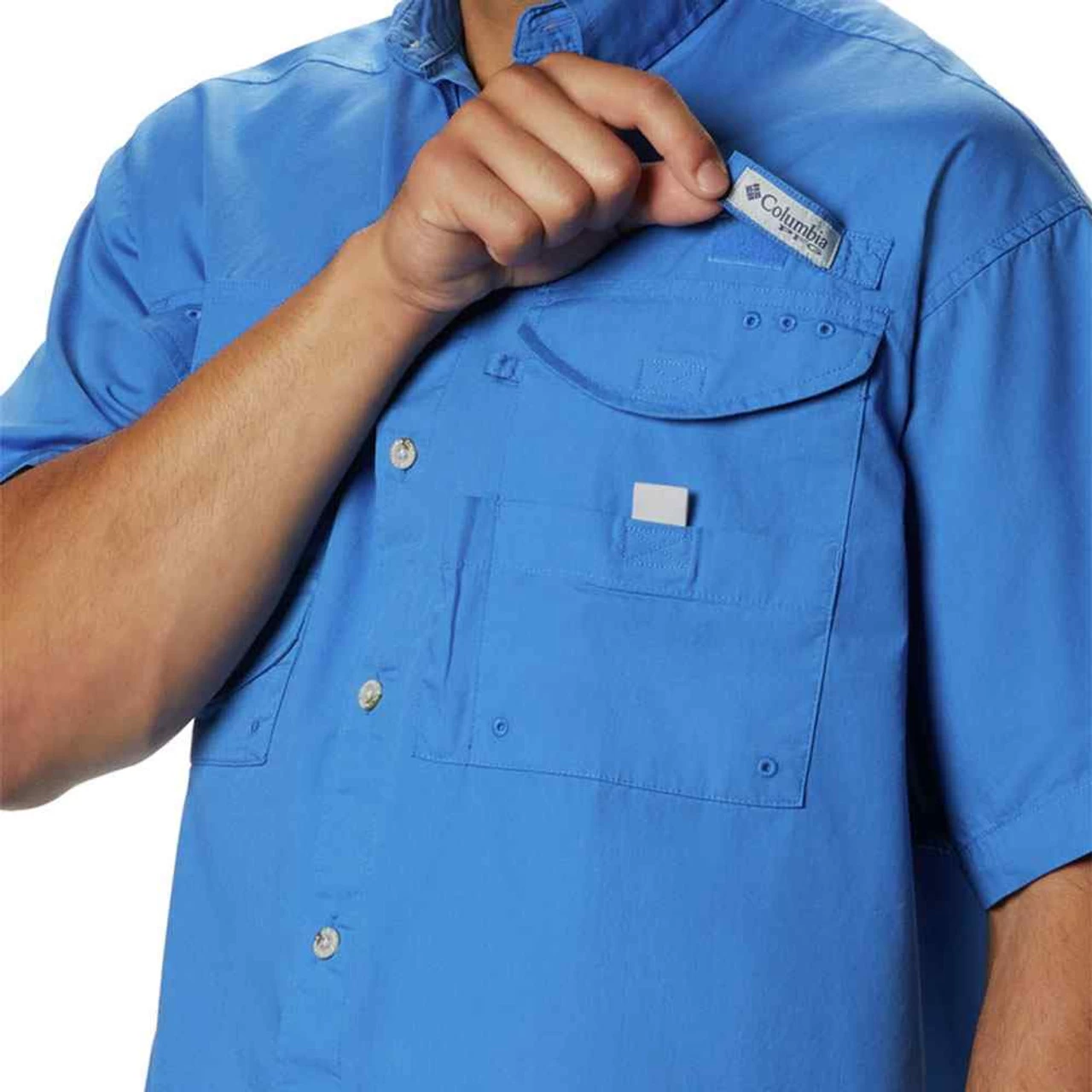 Designed to meet the needs of active anglers, this cool, protective shirt is constructed of soft cotton poplin, with fly box pockets and a rod holder loop at the left chest.