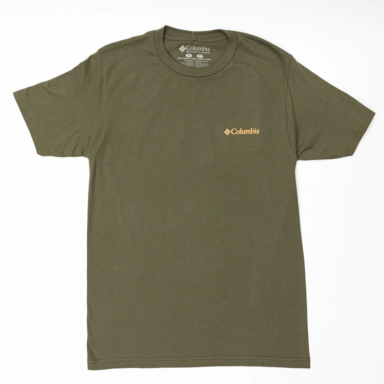 Hit the trails and sport your love of the mountains in this men’s Columbia tee featuring flag logo on the back.