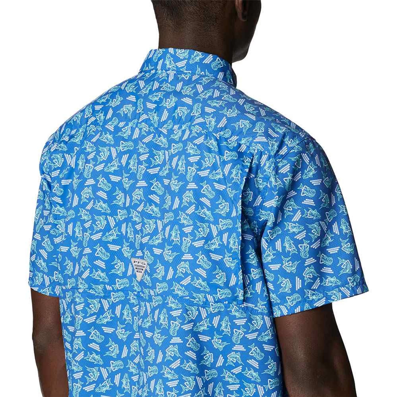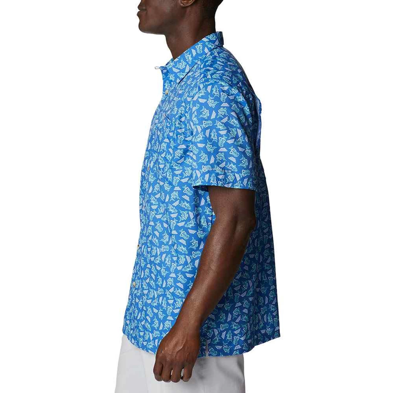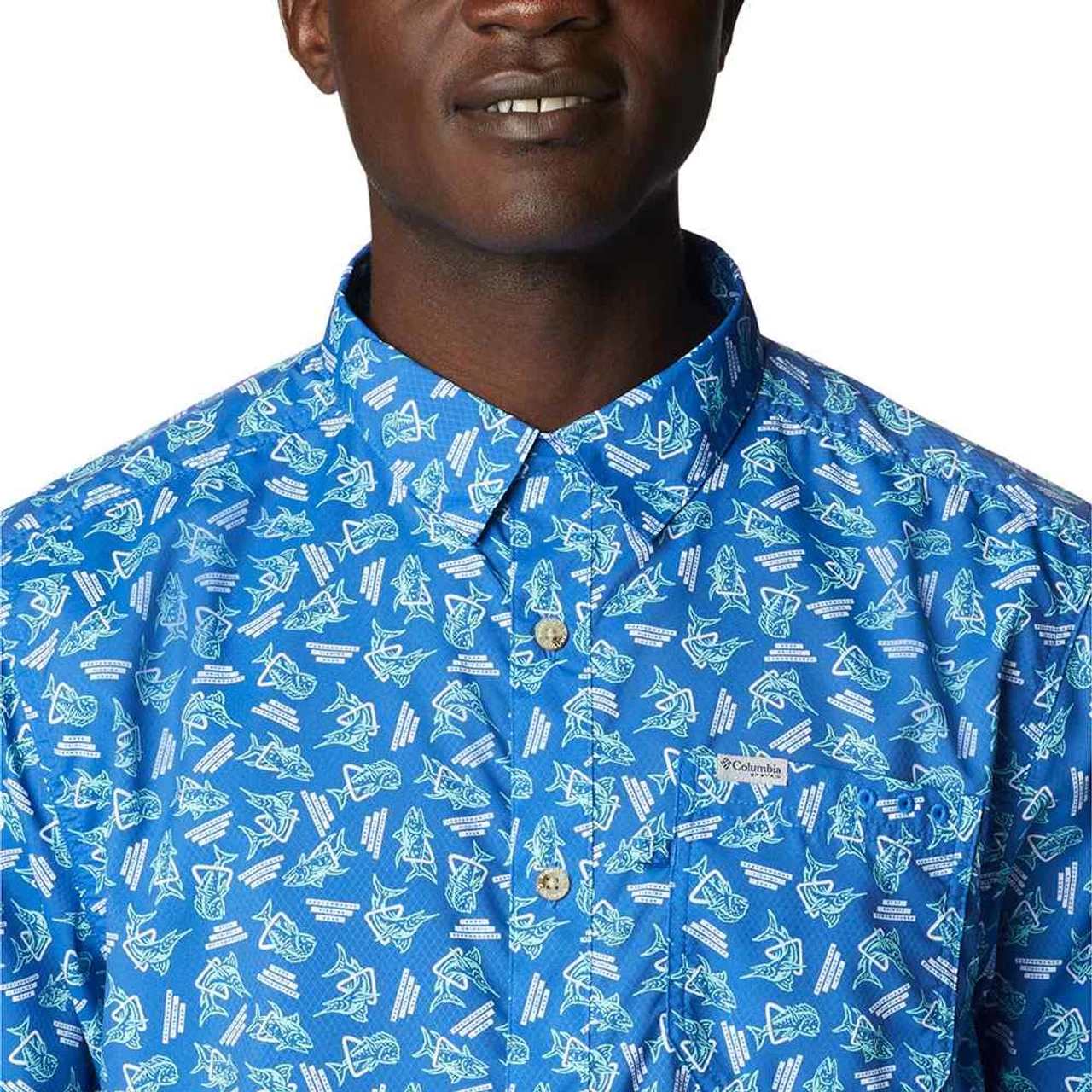 A lightweight short sleeve men’s plaid button down shirt made with sweat-wicking fabric, built-in sun protection and in a fun colorful print.