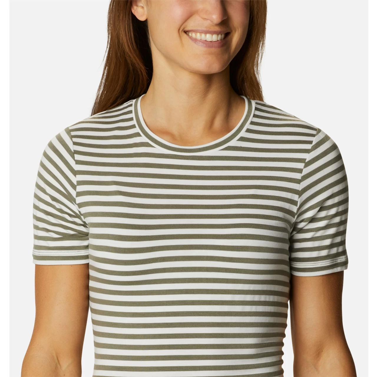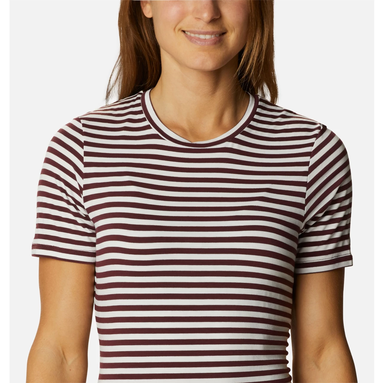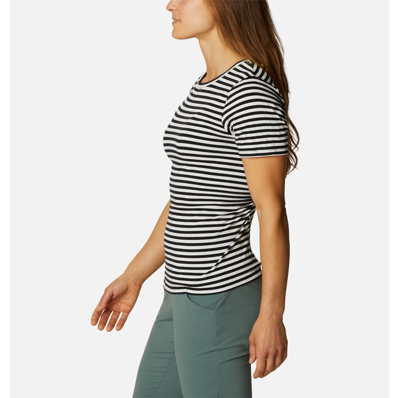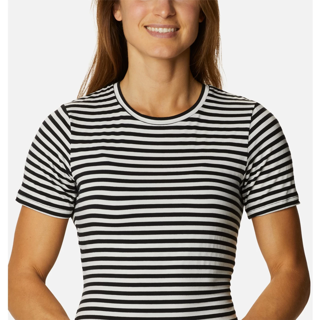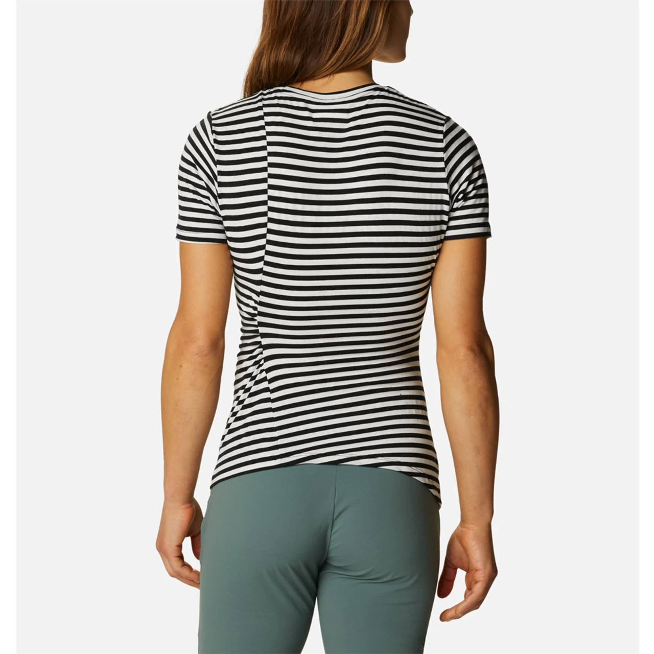Get hooked on this stretchy short sleeve shirt featuring an asymmetrical hem, built-in moisture wicking and sun protection.