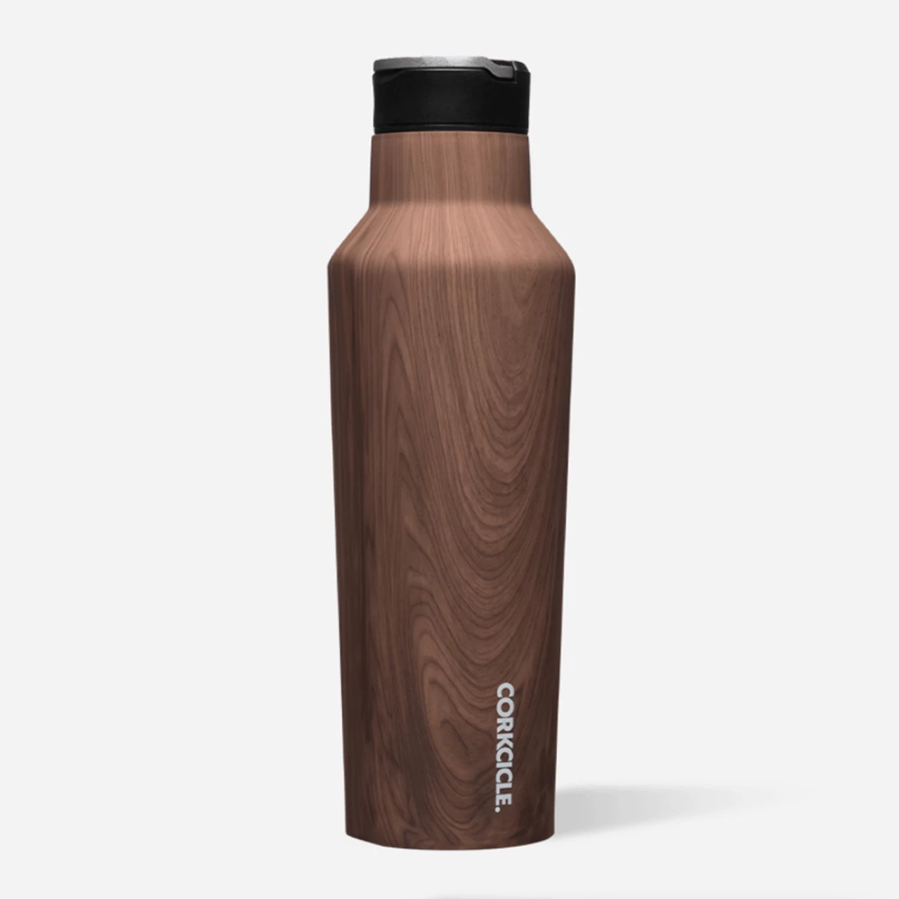 The 20 oz. canteen in walnut can hold both your cool and hot drinks. Corkcicle’s triple insulated canteen includes three layers of temp-control to keep your drink cold up to 25 hours or hot for up to 12 hours.