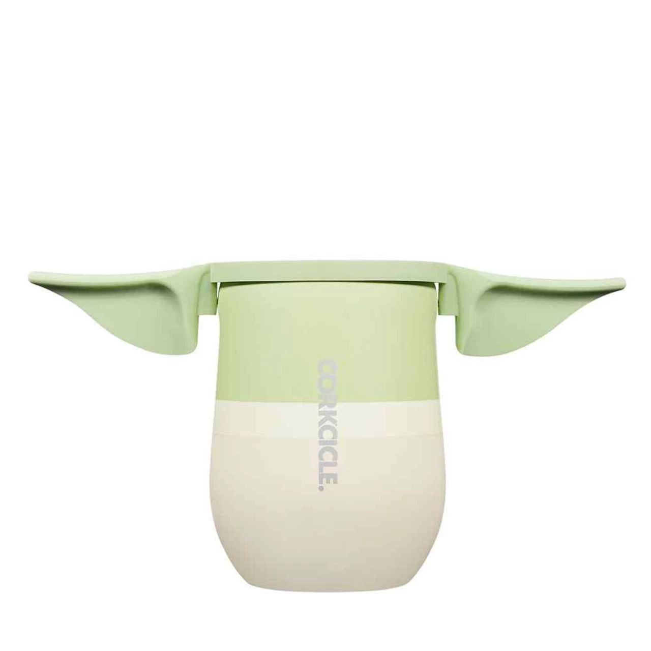 Perfect for kids or adults, give the Grogu from Star Wars lover a cup for their favorite beverages. This stemless cup is great for wine or juice and water. The silicone ears accessory was designed for use when drinking from the product lid. They add a quirky element to the cup.