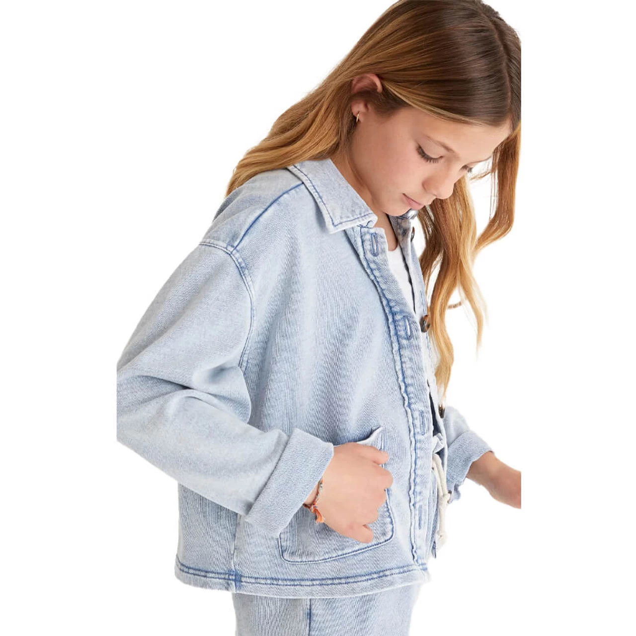 The Winston Knit Jacket is the perfect jacket for back to school and studying outside of school. With a knit denim fabric, it is cozy and flattering with any outfit. This is the comfiest way to wear denim. This jacket pairs well with dresses and skirts or the matching Peggy Knit Denim pant.