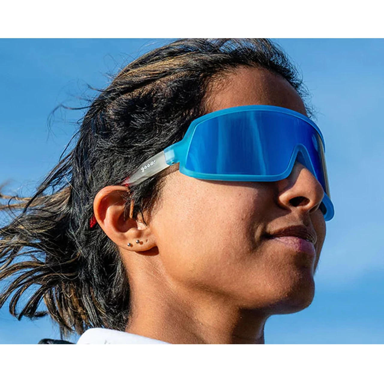 Grab this extreme sports looking sunglasses with wrap around reflective lenses.