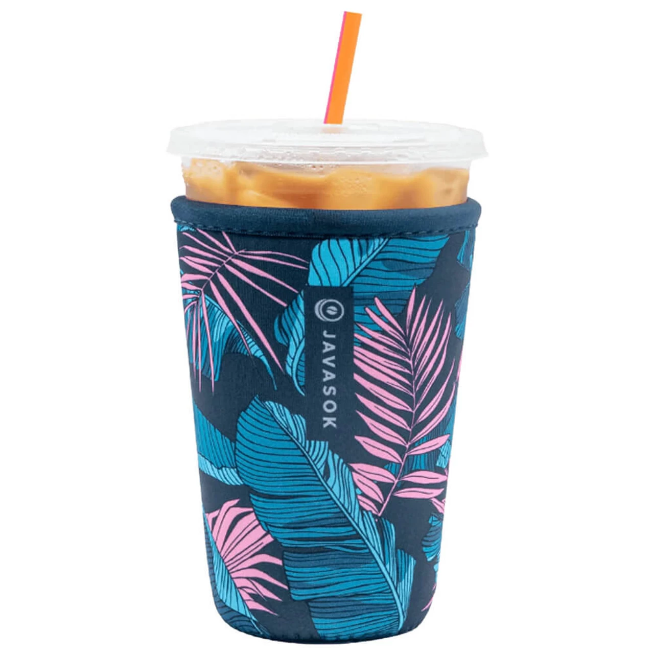 This neoprene beverage sleeve is a must have for people who are always on the go. This reusable sleeve is medium size and fits 22-24 oz drinks.