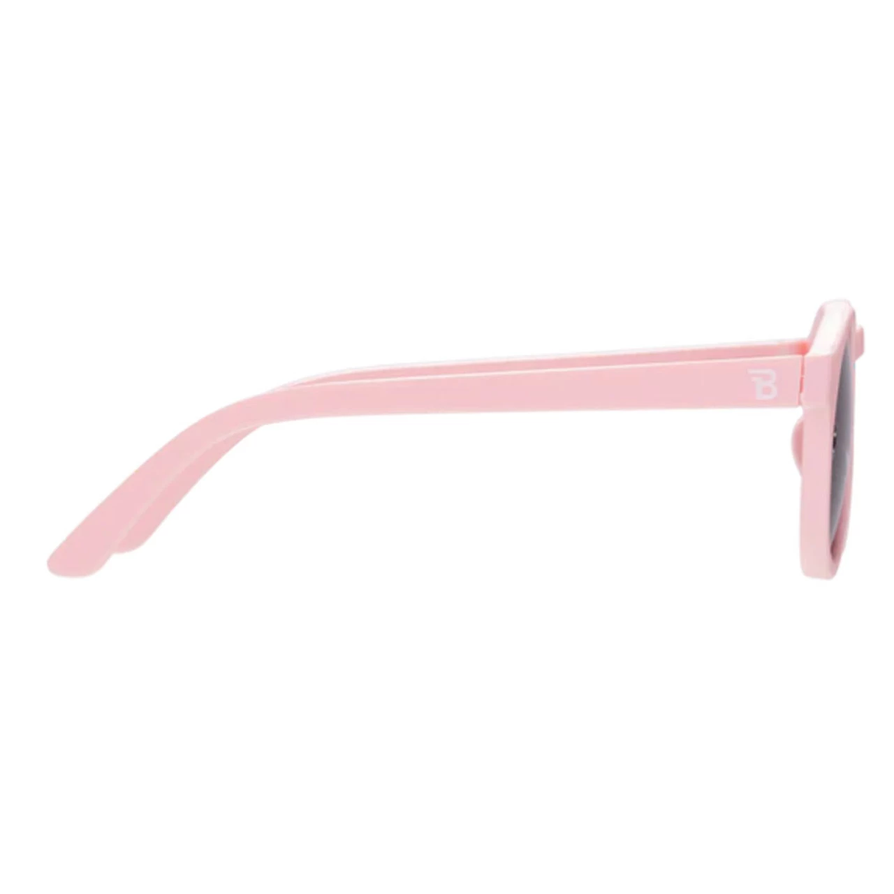 Round frame infant and toddler sunglasses in a pretty ballerina pink, sized perfect for kids ages 0 to 2.