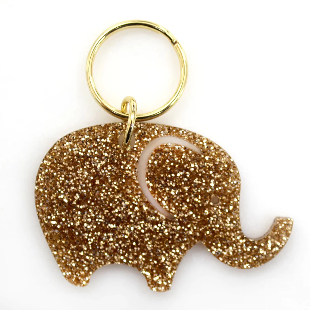 The ideal keychain for an Alabama fan or student, this gold glitter elephant shines wherever you go.