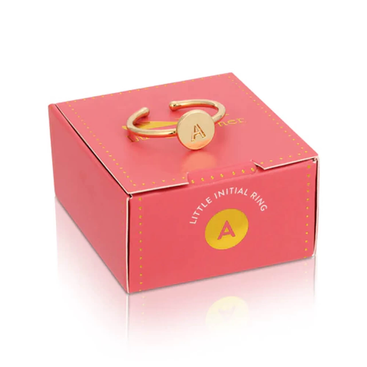 This Lucky Feather Letterpress Initial A Ring is 14k gold dipped and makes the easiest staple piece for everyday jewelry. Perfect for stacking, this adjustable signet ring fits most ring sizes and makes gift giving simple by coming in a adorable box.