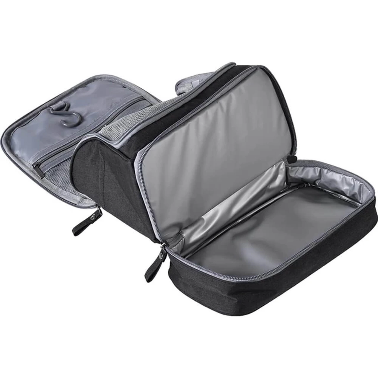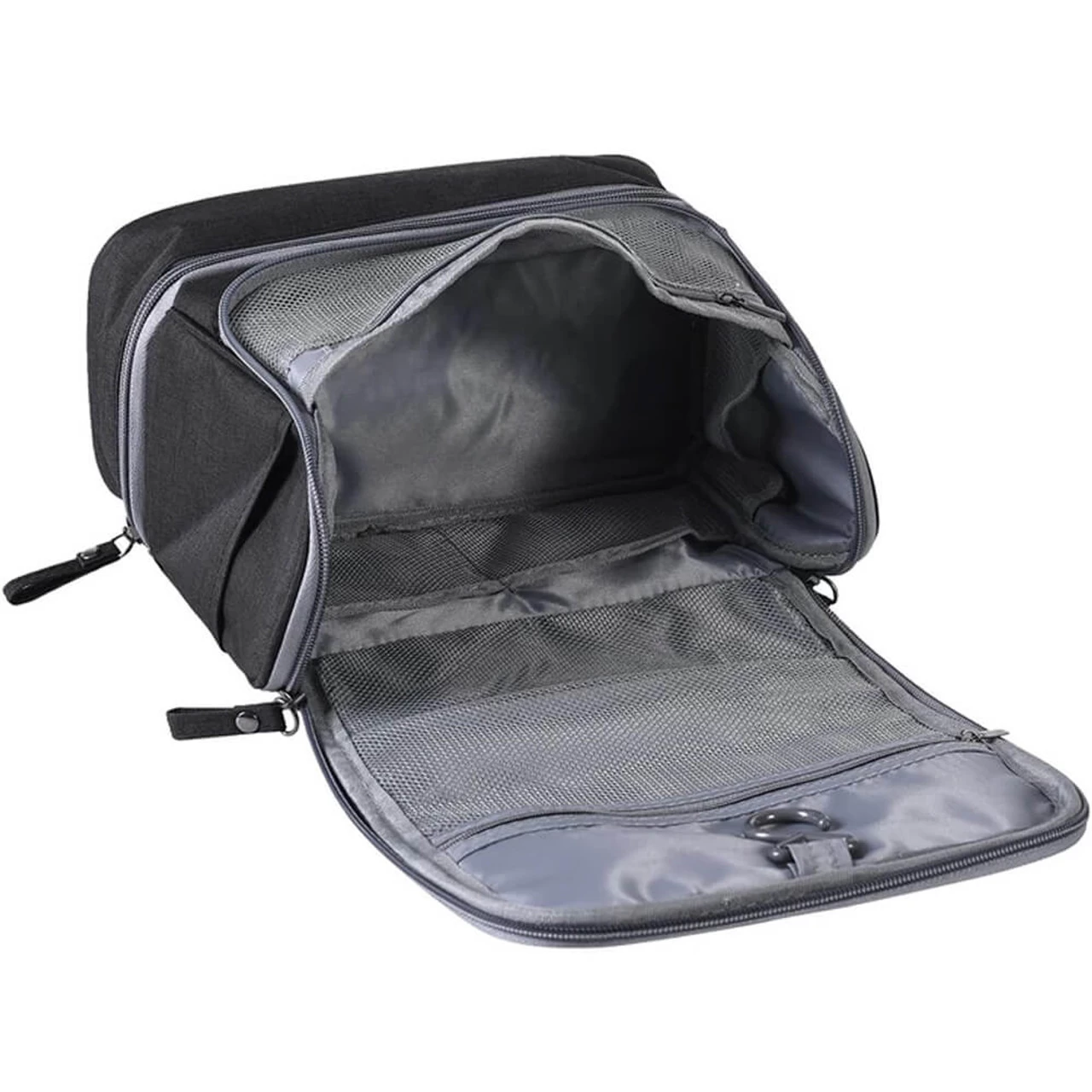 Zipper pockets help keep your items in place and organized, as you wish. Top flips open with handy hanging hook. Bottom easily unzips to keep items such as your razor or toothbrush conveniently separate from others, and prevents them from getting wet. Interior pockets help to keep all of your items in place, where they should be.
