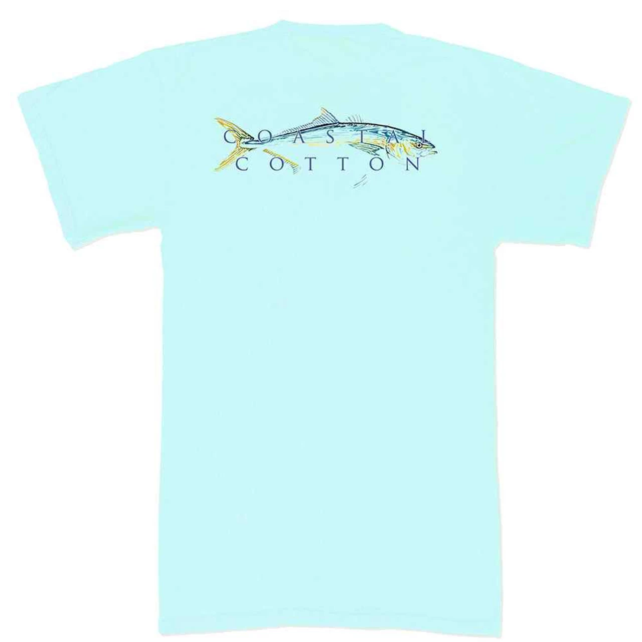 Fishermen delight in wearing this pre-washed short sleeve cotton t-shirt with a colorful Amberjack fish on the back.