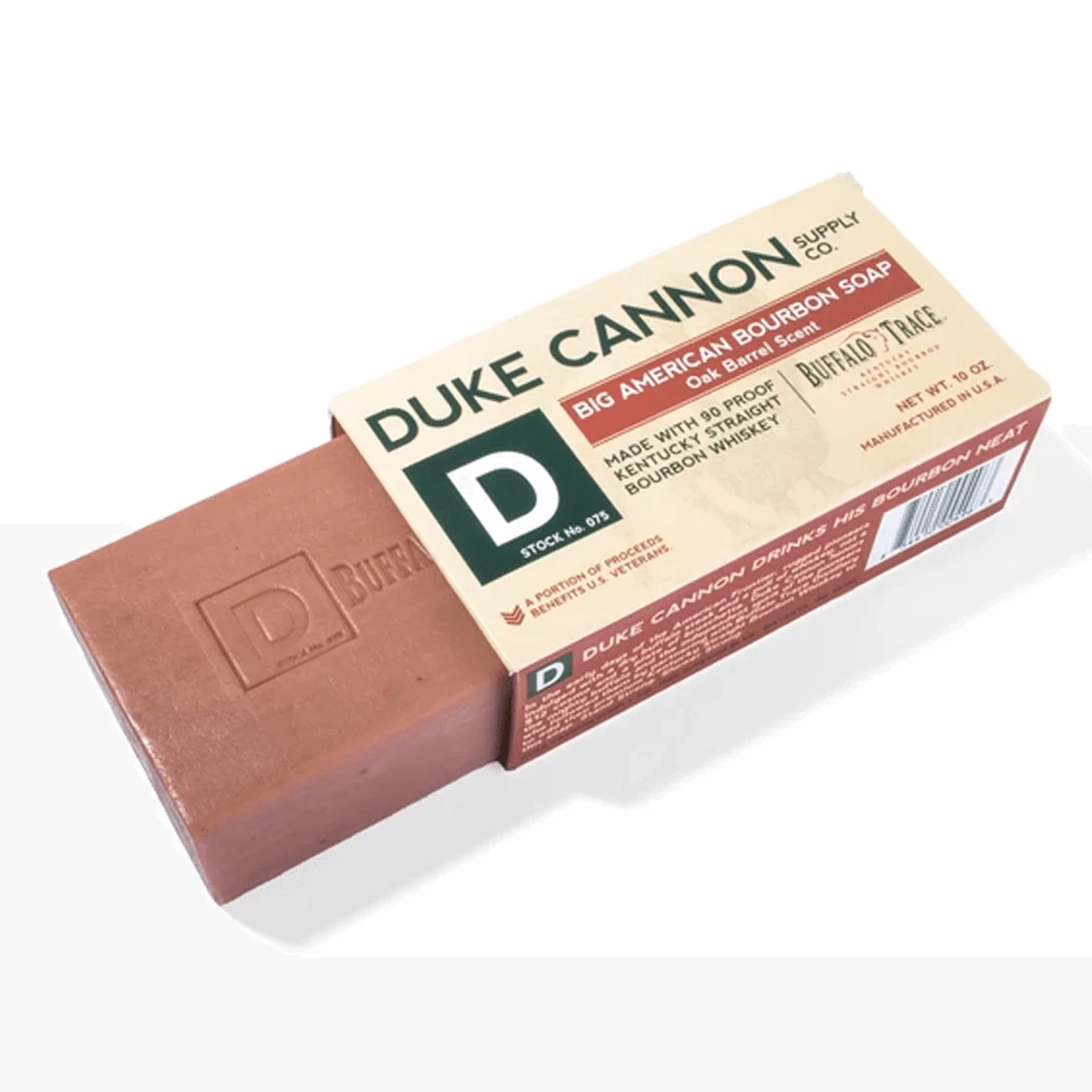 Made with Buffalo Trace distilled Kentucky Straight Bourbon Whiskey, this Duke Cannon Big Brick of Soap takes you back to the American Frontier with an oak barrel scent that smells like bourbon tastes, good. And Yes, this soap actually has Bourbon in it.