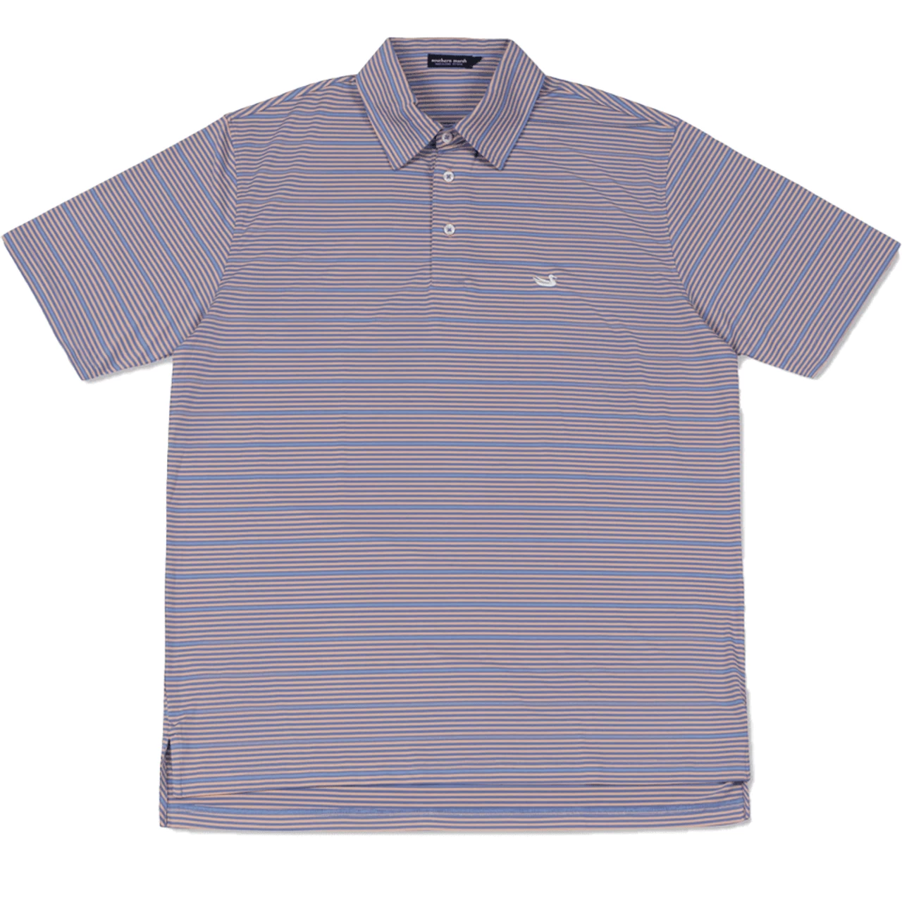 This Southern Marsh men’s Bermuda Performance Polo shirt features a Chenier Stripe and wrinkle-free fabric perfect for those long golf games.