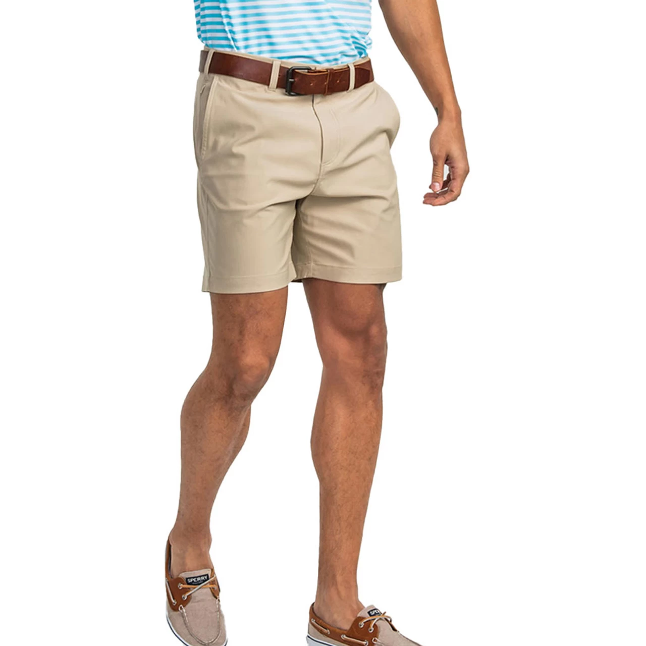 These performance chino shorts by Southern Shirt Company feature a hidden elastic waistband and four way stretch fabric that is also quick drying.