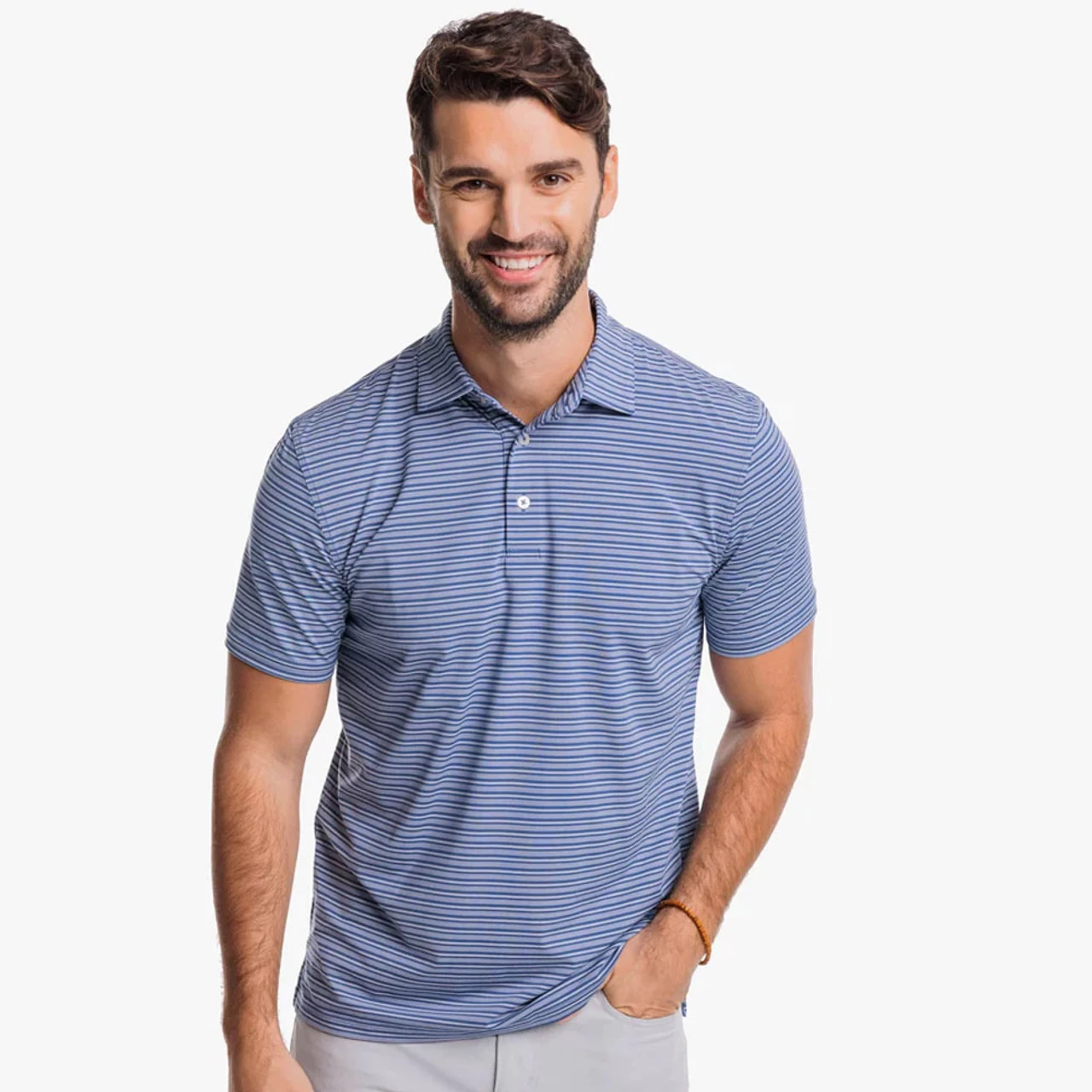 A classy sport performance polo made with moisture wicking material, brrr Cooling technology, and a self-collar.
