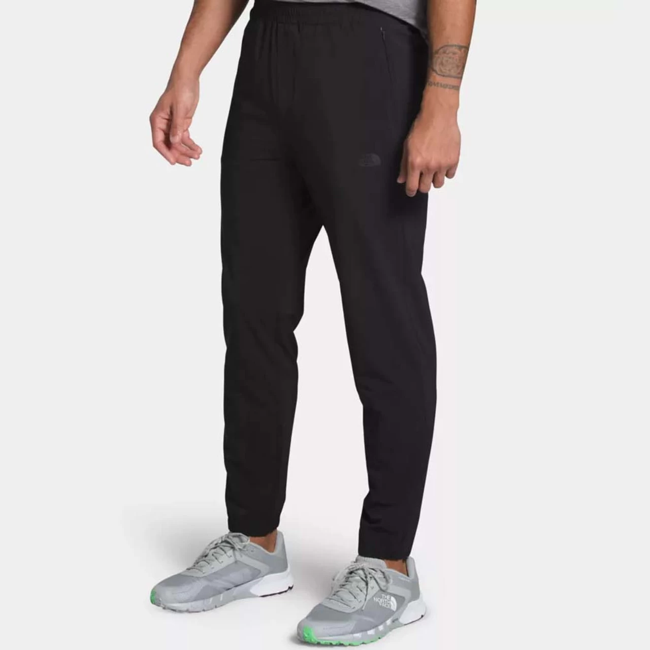 This Men’s North Face Wander Pants offer a relaxed fit and a durable water-repellent fabric. Pull-on pants feature a straight leg and elastic waist. Relaxed fit gently drapes off the body for optimal comfort. Invisible zippered hand pockets. Back zip welt pocket.