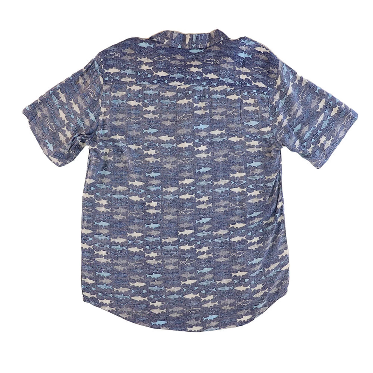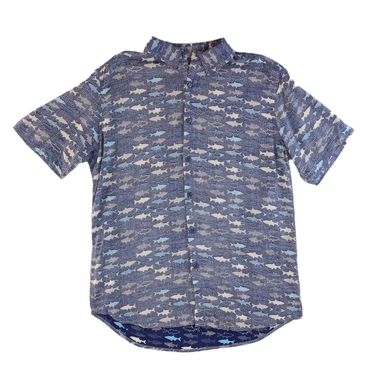Conquer long summer days in this button down shirt. This top features a strong durable fabric that is also built to keep you comfortable. Pair this fish designed top with your favorite pants or shorts.
