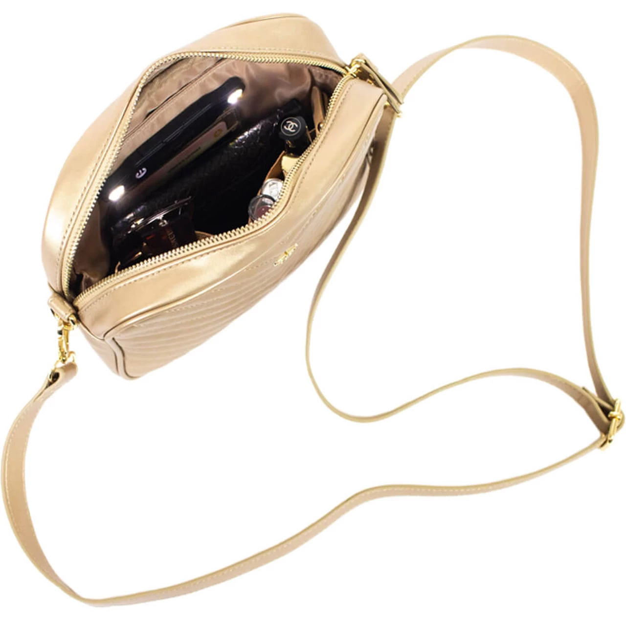 You will love the light! PurseN’s New Dual Litt Crossbody LED Lighted Handbag in beautifully quilted gold is versatile, stylish and comes with a unique custom light feature that eliminates the frustration of searching through your handbag in the dark. Use the removable crossbody strap or use the convenient belt sleeve for a handless carry option. This bag is about versatility!