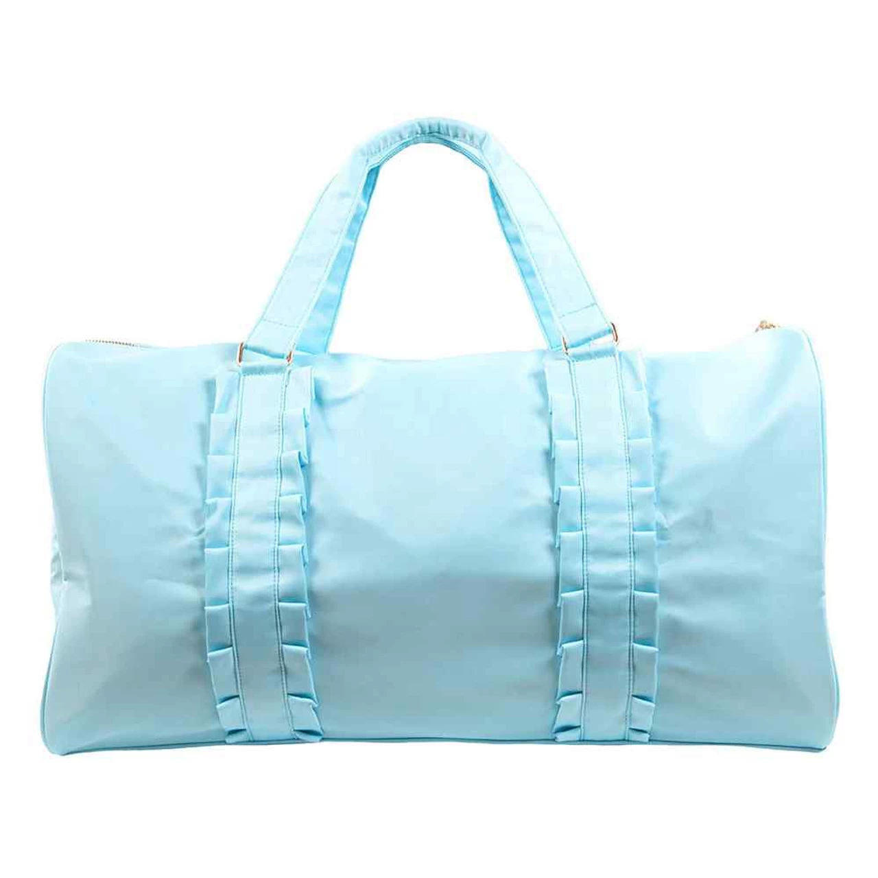 - These nylon duffle bags feature a top zipper, ruffle detail on the front, and a woven Simply Southern label.