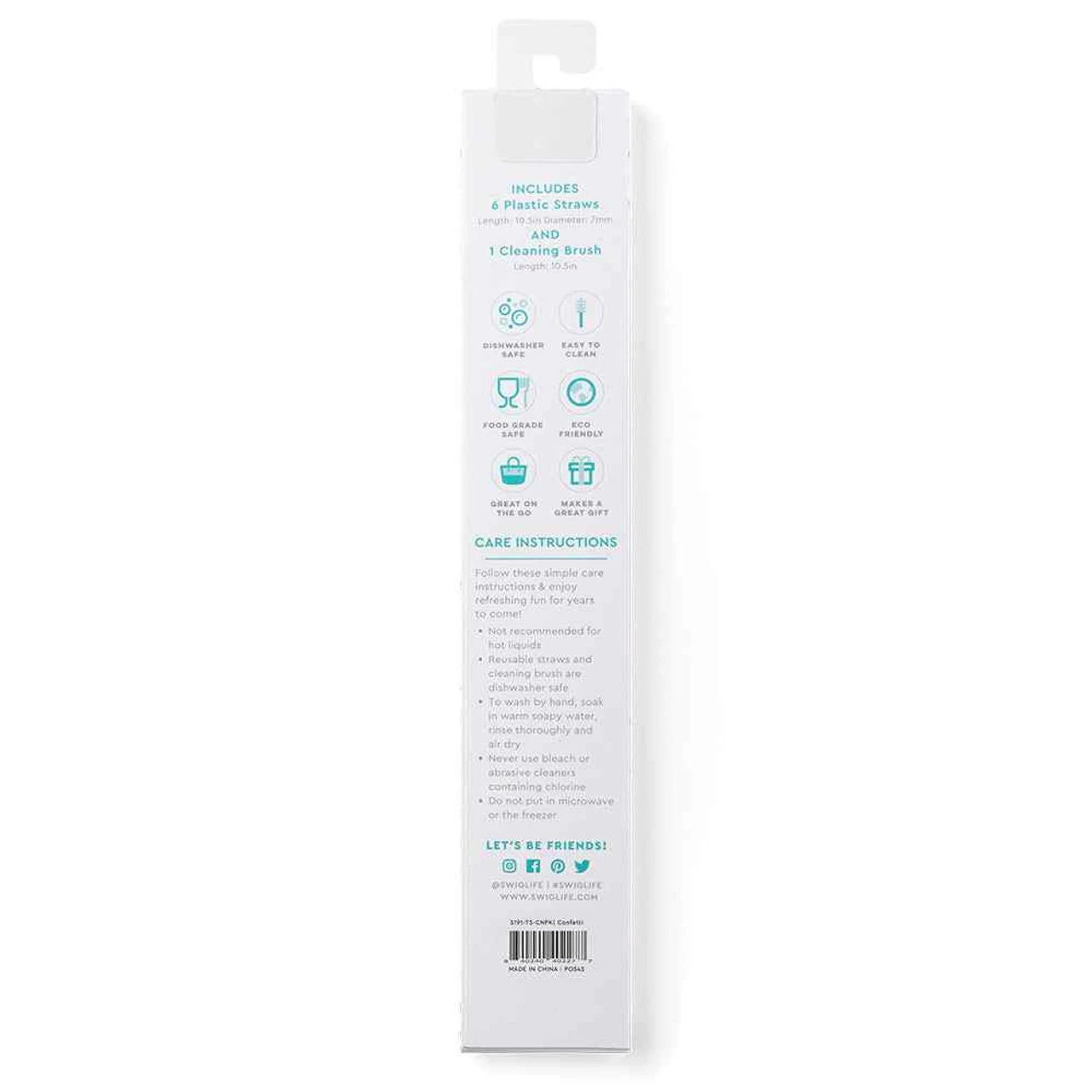 - 4 confetti, 2 pink straws, and 1 straw cleaning brush