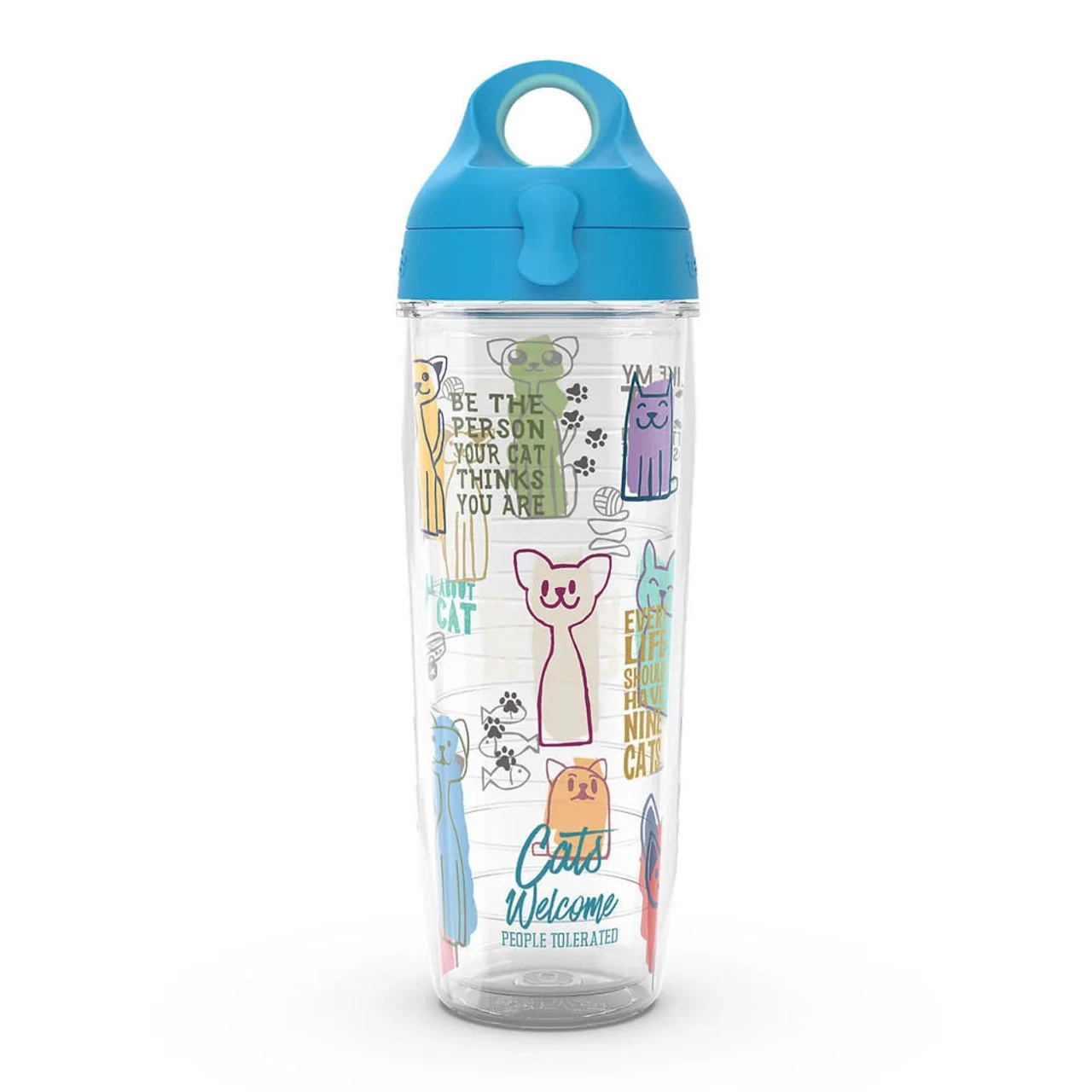 Featuring a single latch flip lid and a loop that makes it easy to carry, this slim bottom water bottle fits in some bicycle cages and cup holders.