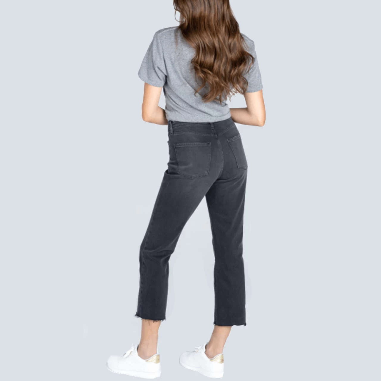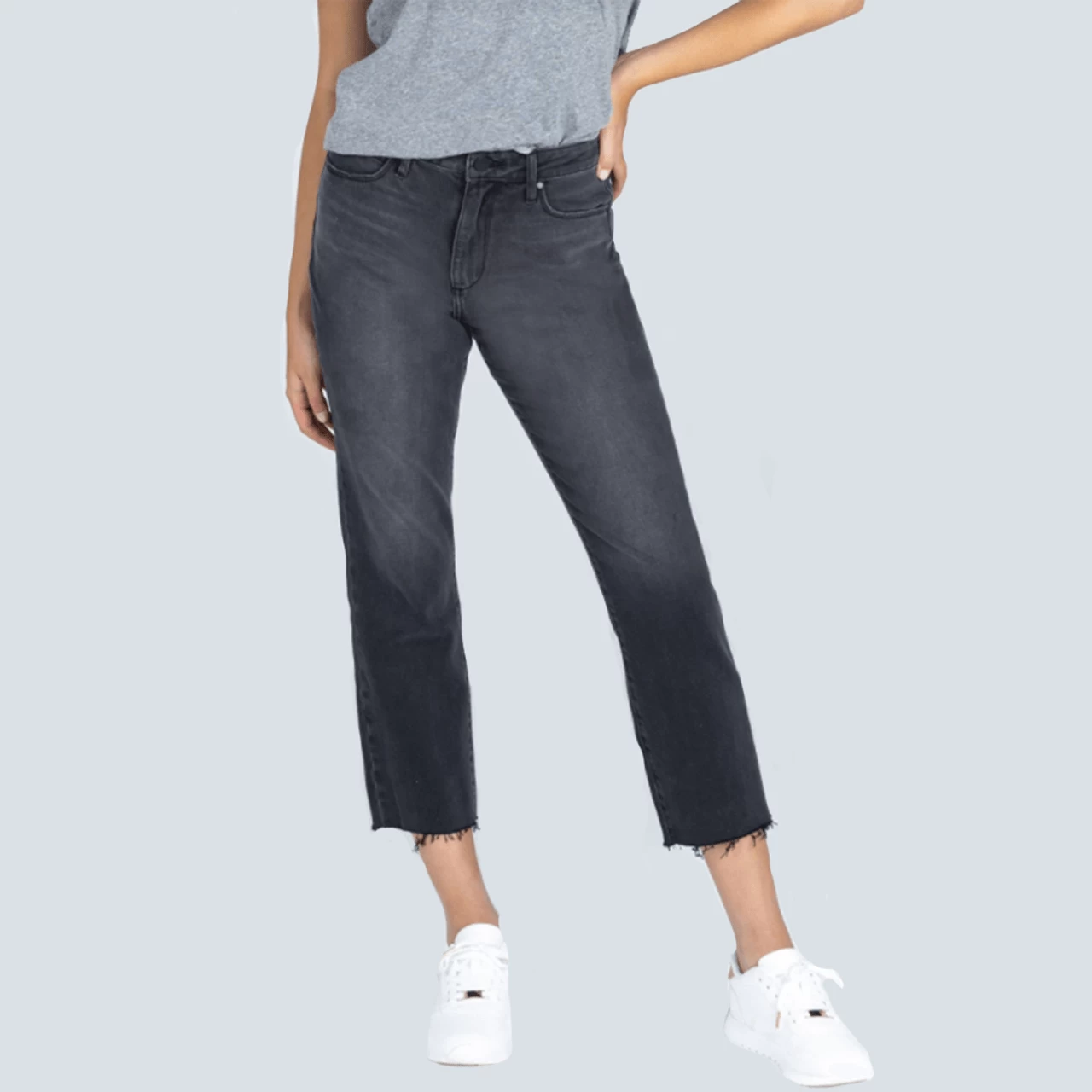 A classic straight style jean updated with a high rise waist and a crop leg for spring. So cute for casual days.