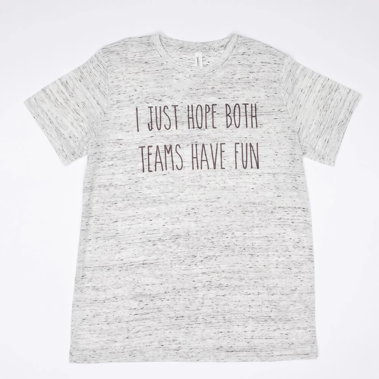 Take a passive approach to having fun at a sporting event when you don’t know who to root for. This shirt shows your appreciation for sports while not necessarily picking a side. The marbled white material is soft and comfortable. We all just hope both teams have fun.