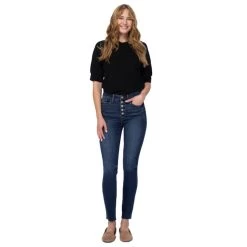 These dark wash jeans are a classic. These skinny jeans are extremely comfortable and are flattering on everyone!