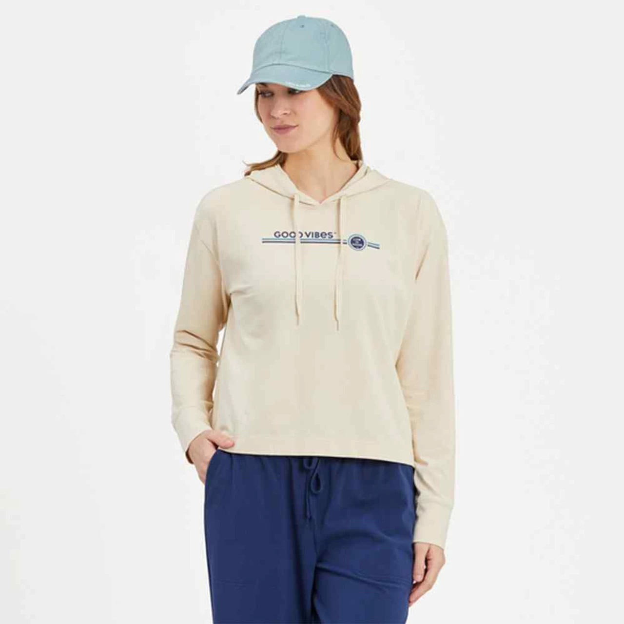 This relaxed, cool, and slightly cropped hoodie is so cute and comfortable.