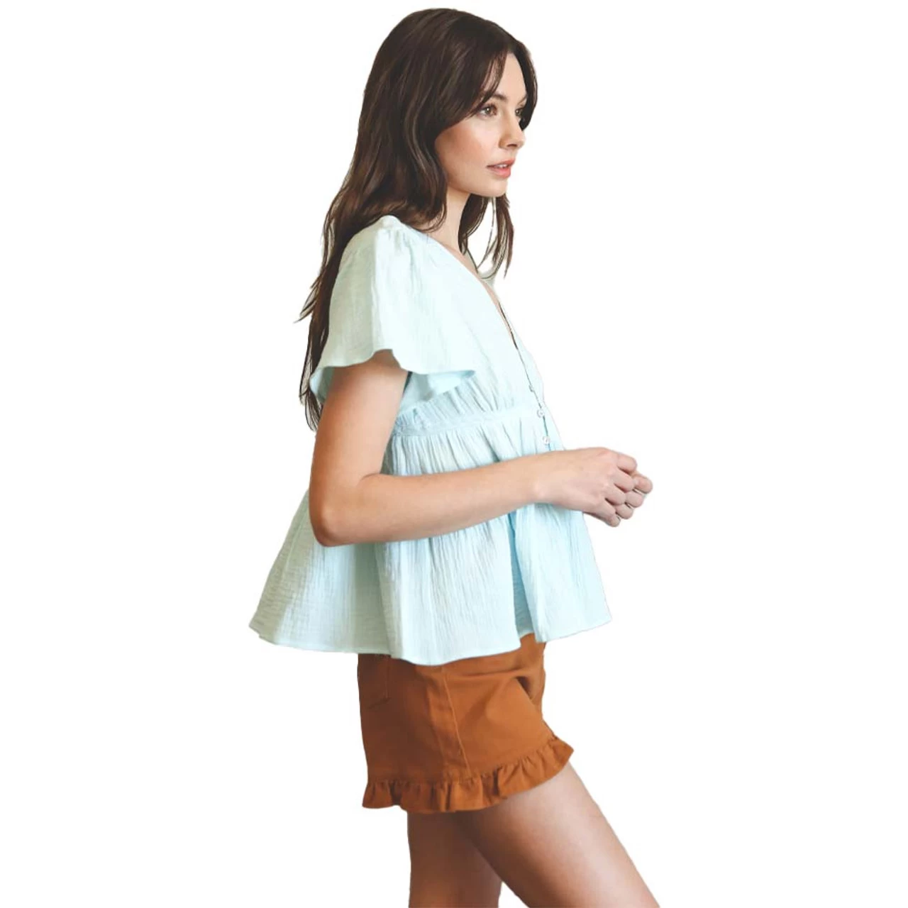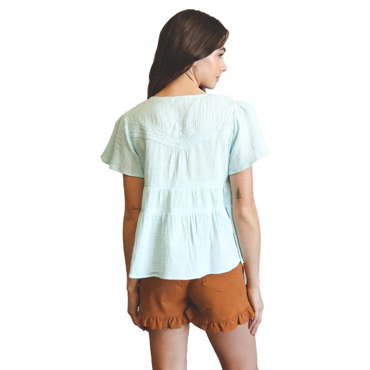 - Flowy bell short sleeve with shirring on shoulder top