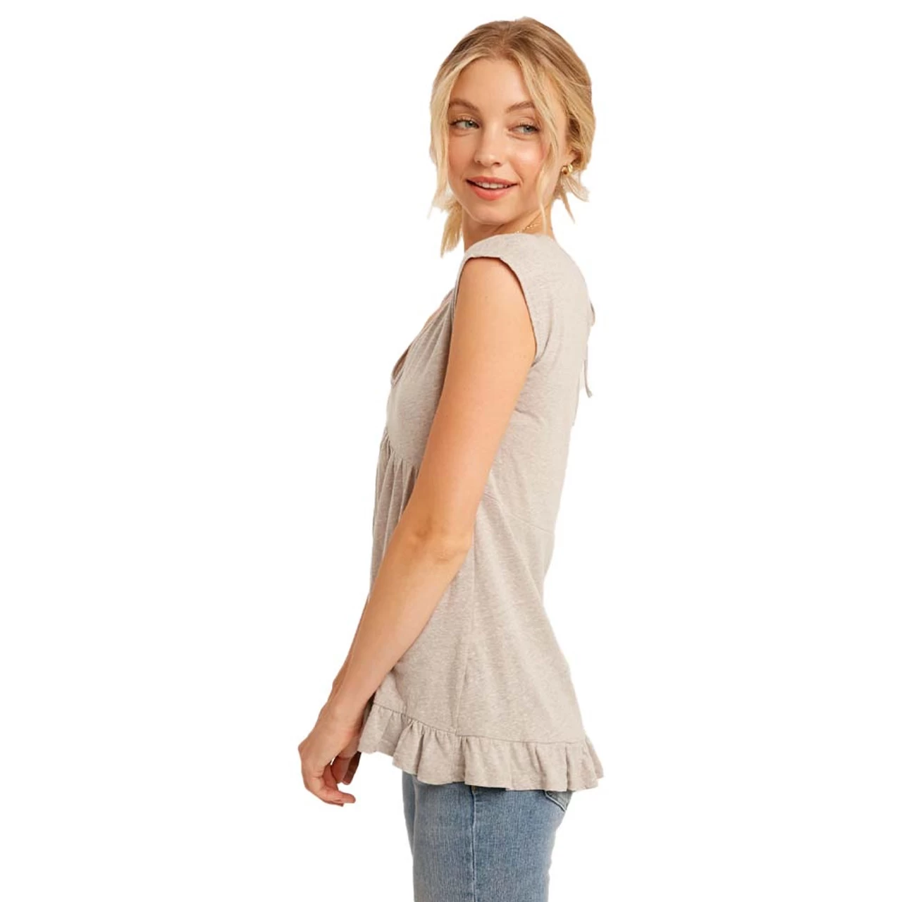 This two tone v-neck ruffle top is so cute and comfortable. Lightweight and breathable, this top is a must have.