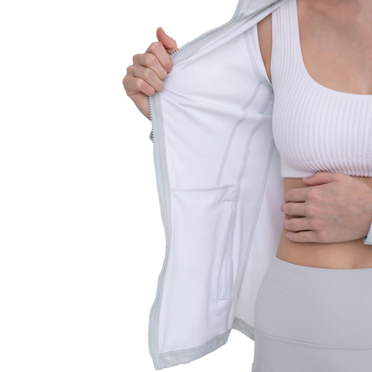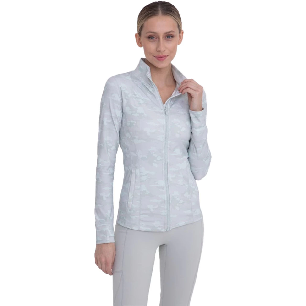 Mock neck collar, thumb holes, and a full front zip make this performance jacket the perfect choice for early morning runs.