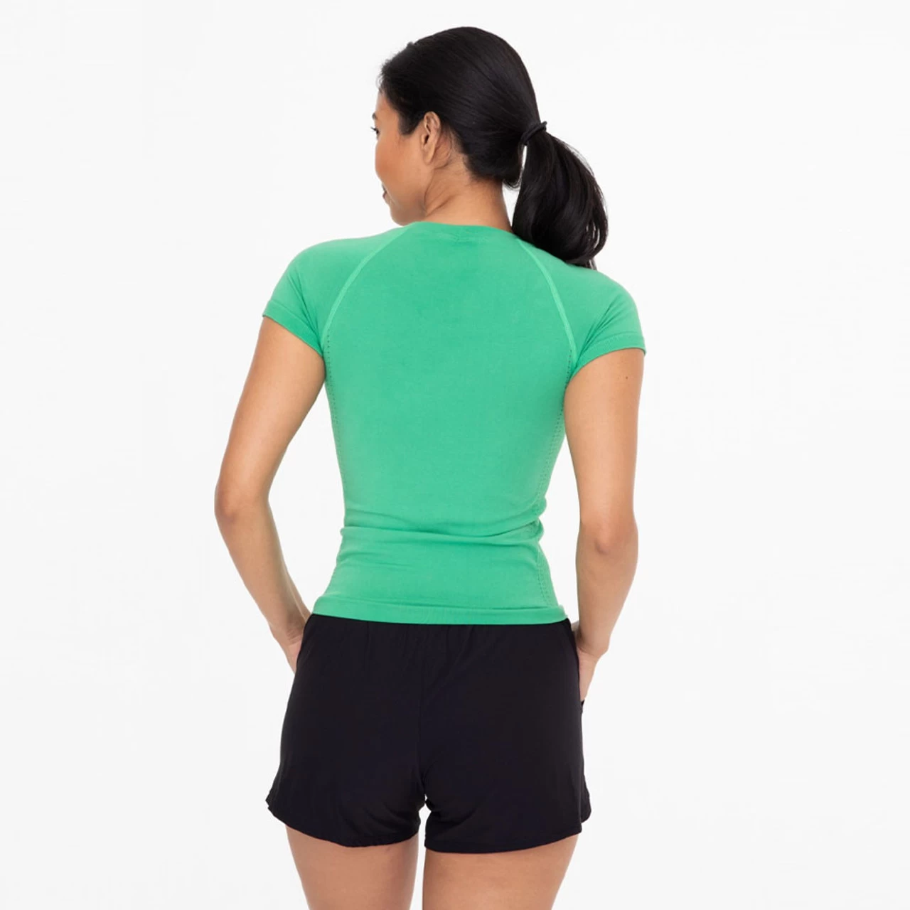 This slim fit tee is stretchy and features raglan sleeves that help with mobility. The perforated laser cutting at the side seam and under the arm add ventilation for comfort while on the go.
