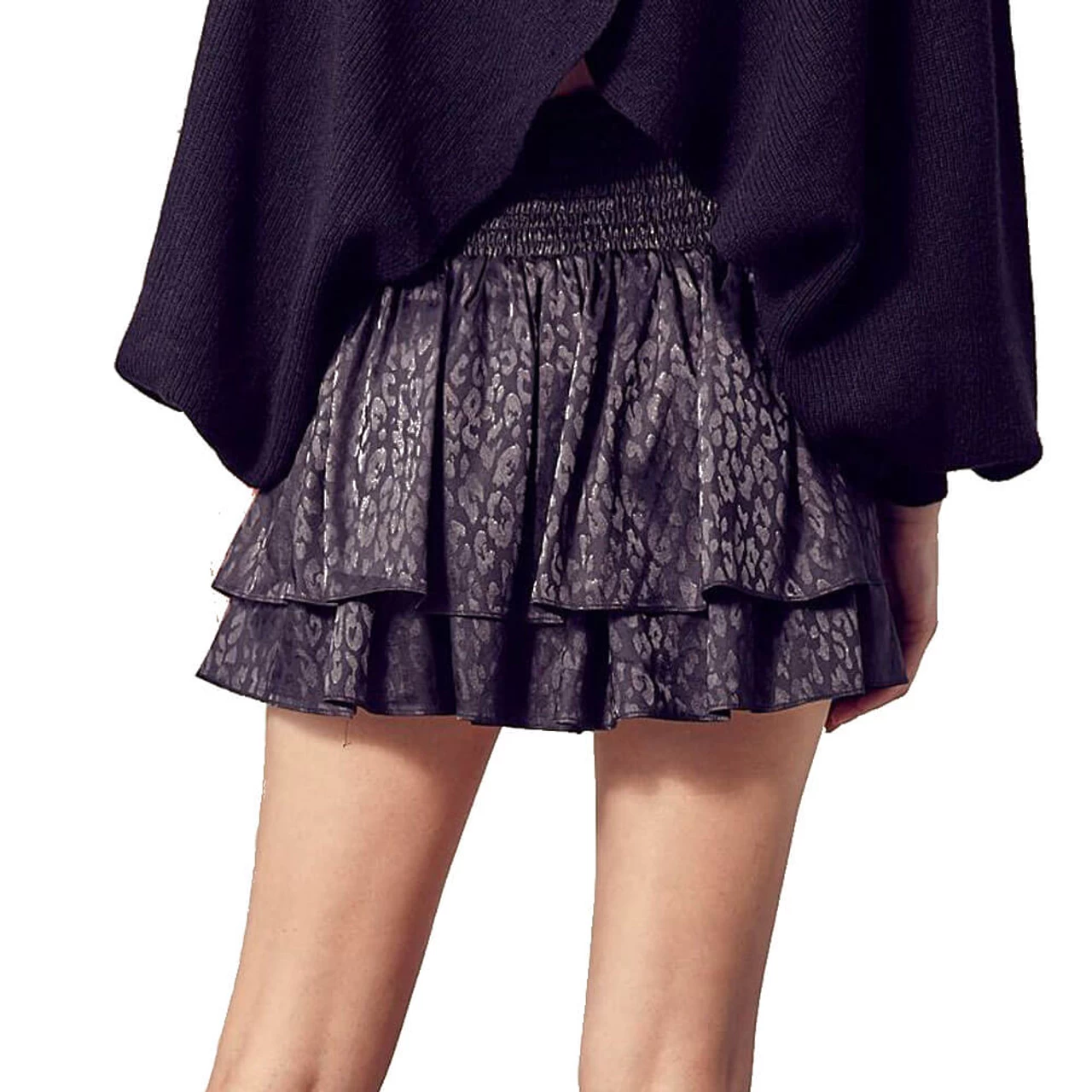 This Mustard Seed Smocked Skirt brings a unique twist to a women’s skort with a leopard print, smocked back, and gathered front. Available in black and dark clay.
