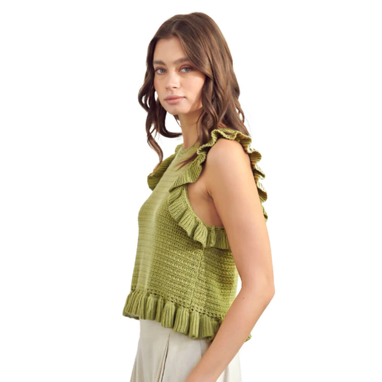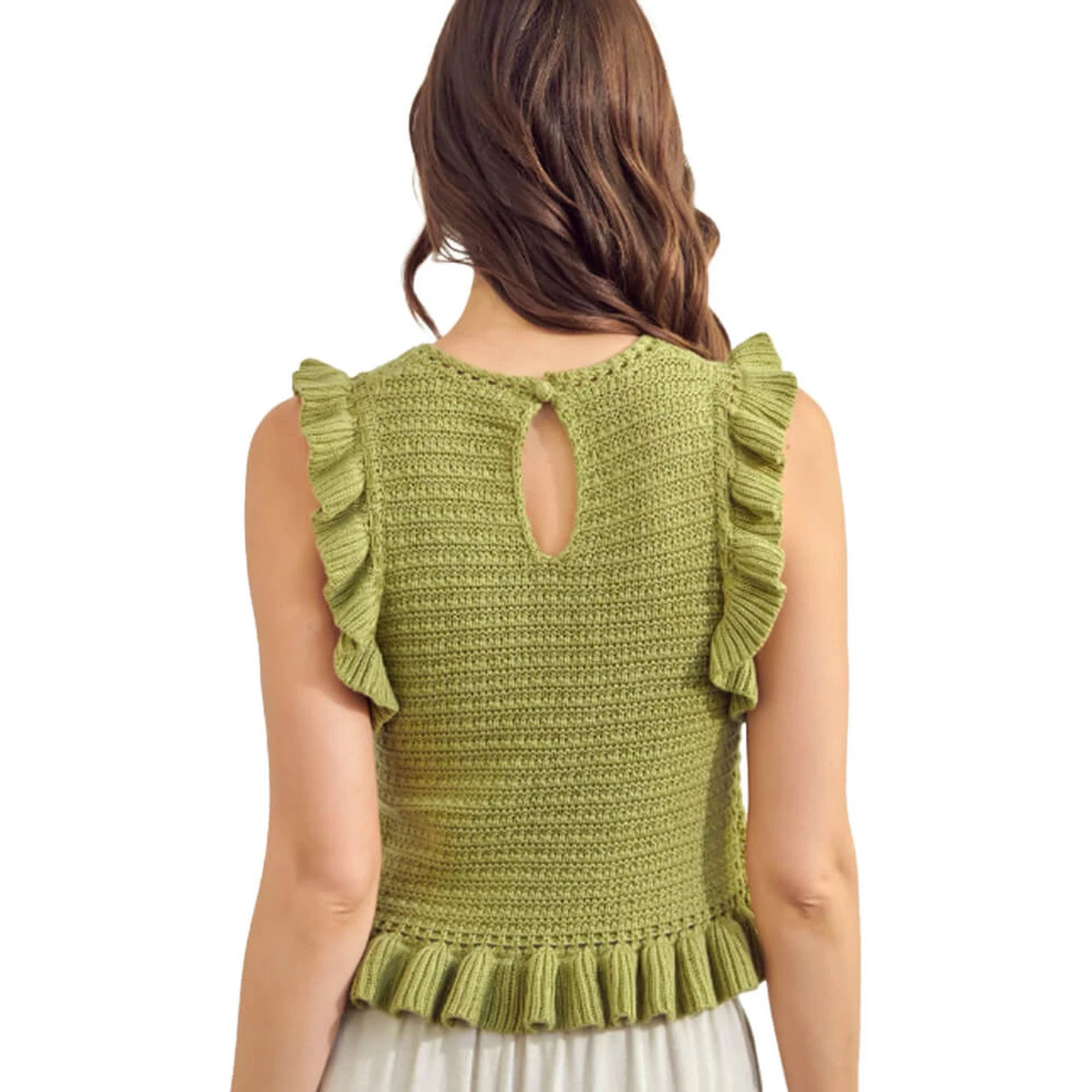 - Crochet knit with ruffle detail