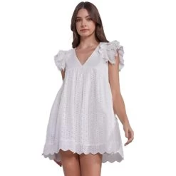 With adorable ruffle puff sleeves and a flowy feel, this romper dress pairs perfectly with sneakers or sandals for the perfect look on a sunny day!