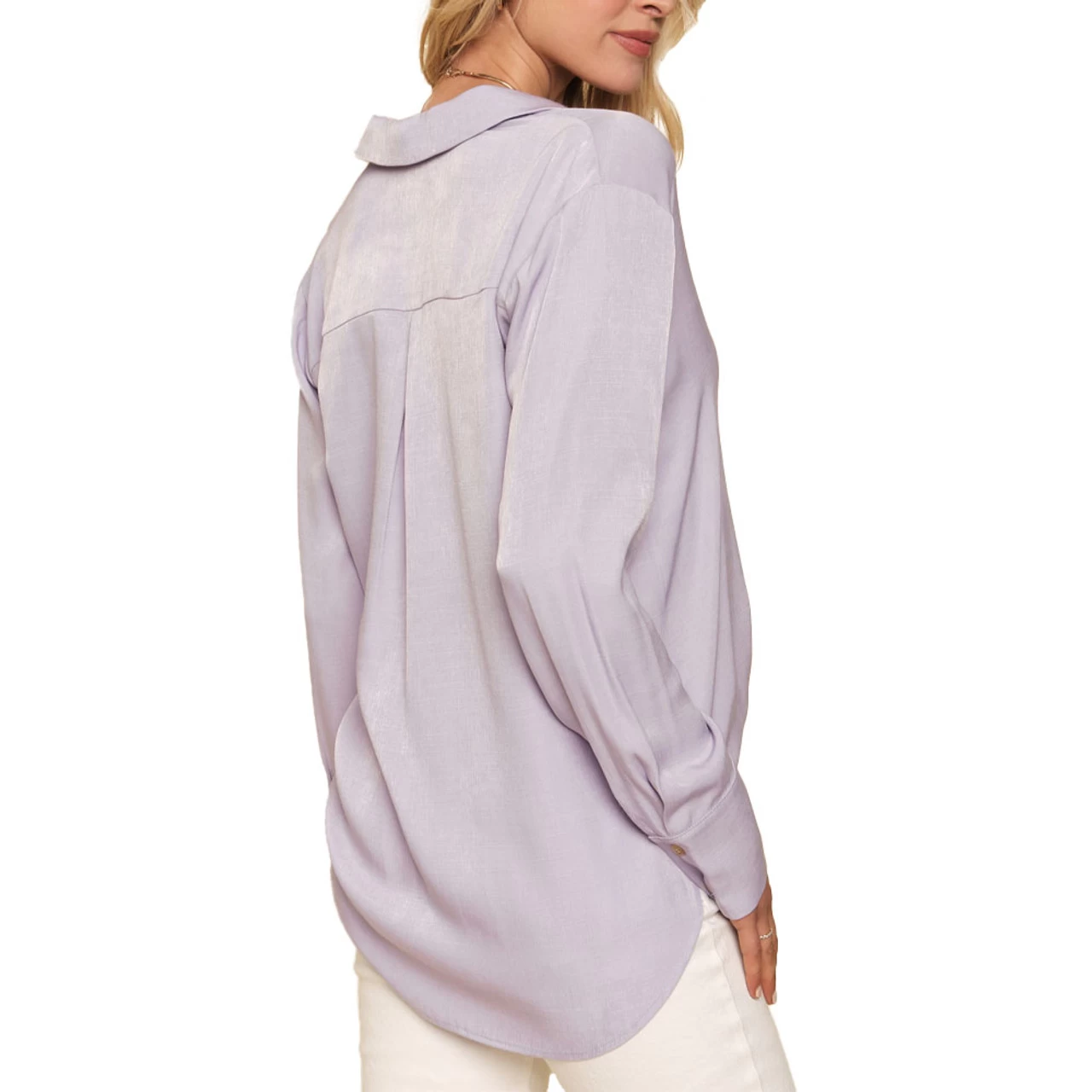 Shiny and loose fitting this collared shirt easily offers you versatile looks so you can mix and match it with other items.