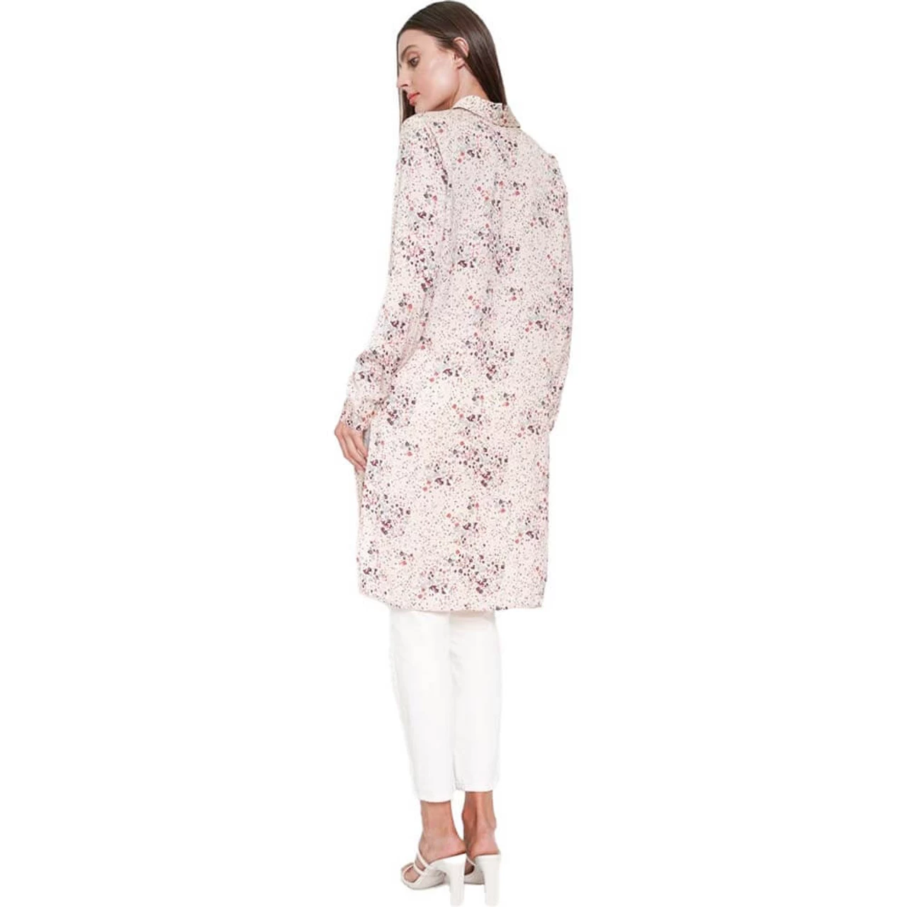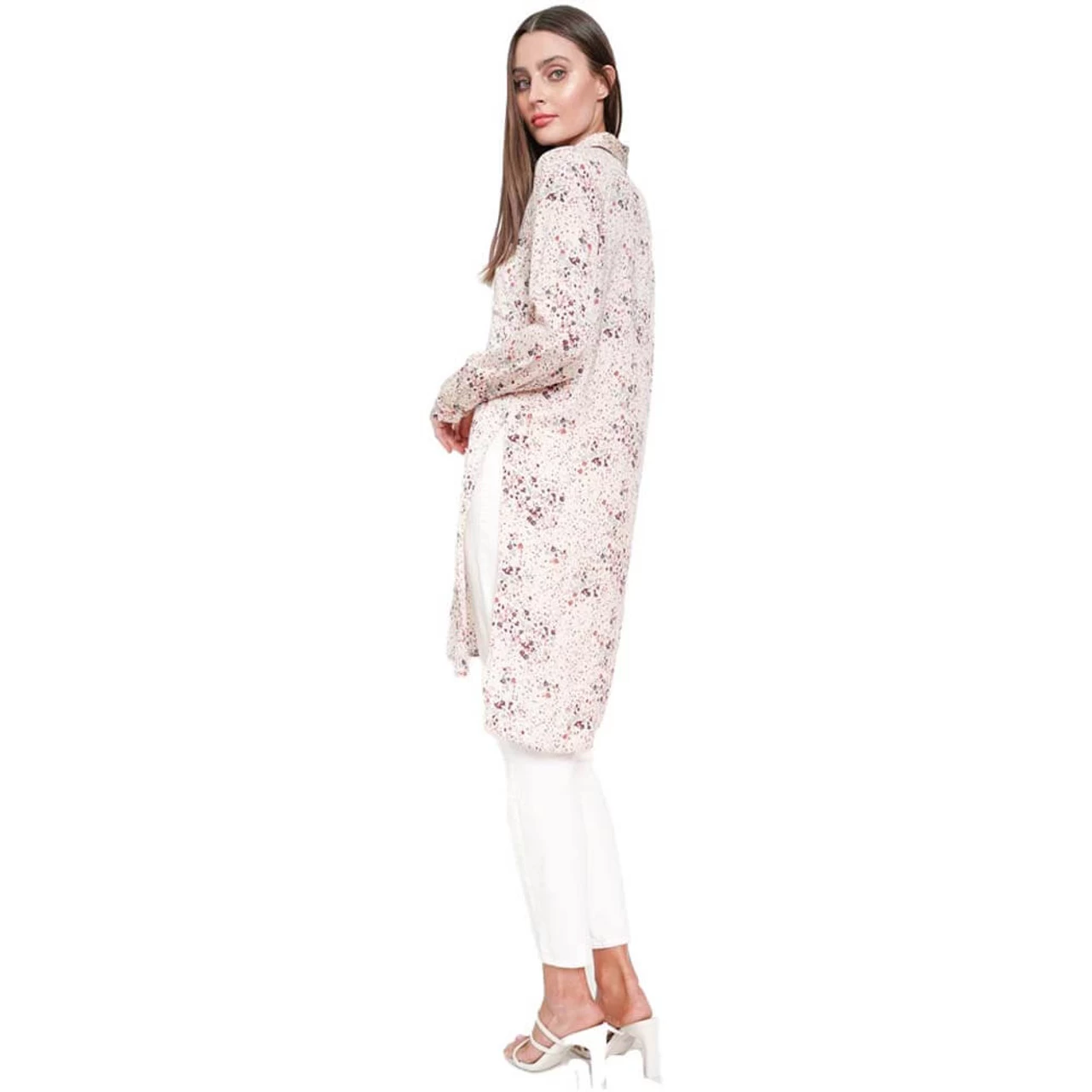 This women’s longline button down shirt from Mystree features a printed floral pattern, deep side slits and a bust pocket. Perfect to wair with your favorite pair of skinny jeans or pants.