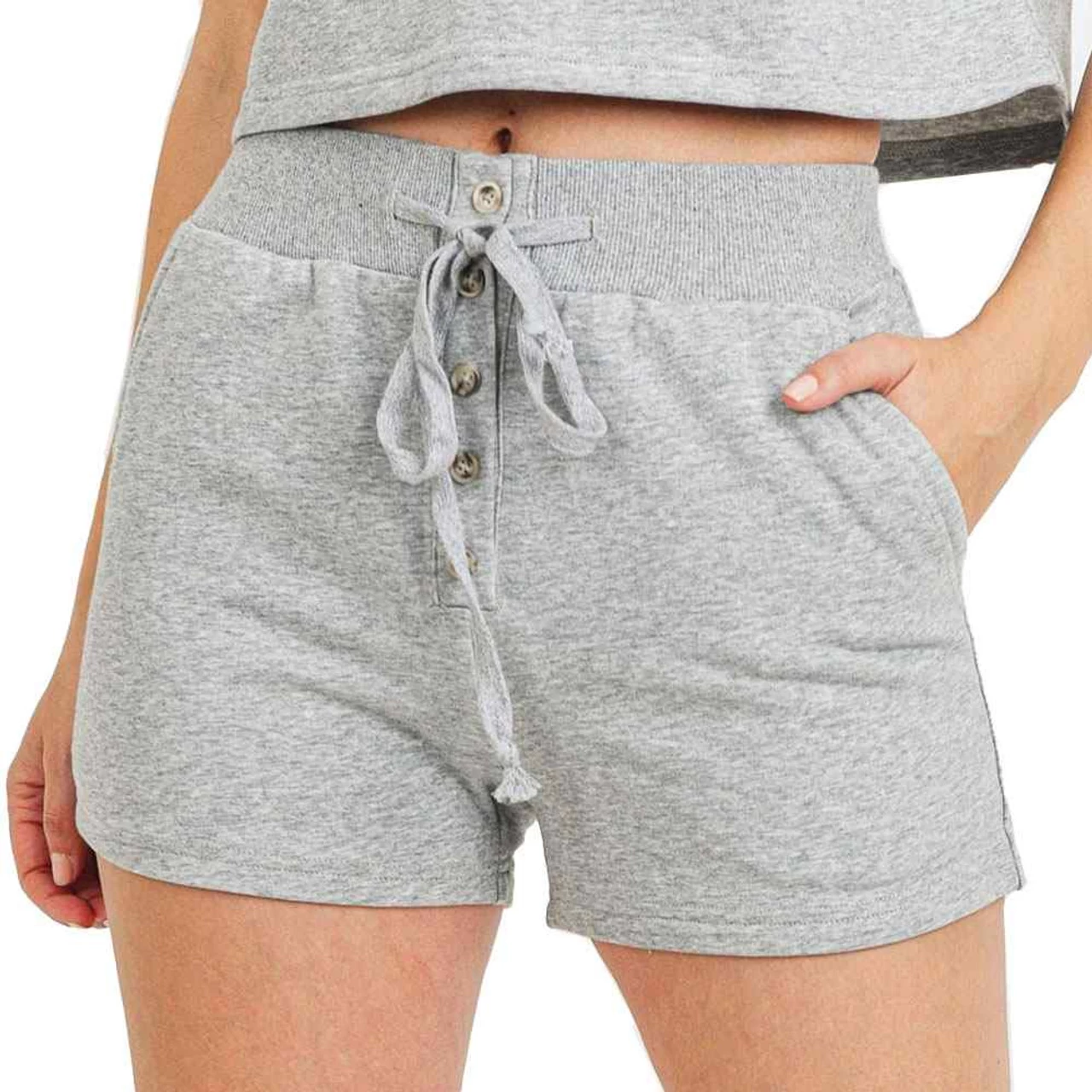 These loungewear shorts have a boxer like feel to them. The french terry fabric is cozy and made for sleeping in or lounging around the house. There is an elastic drawstring waistband but also a button down feature. They also feature pockets.
