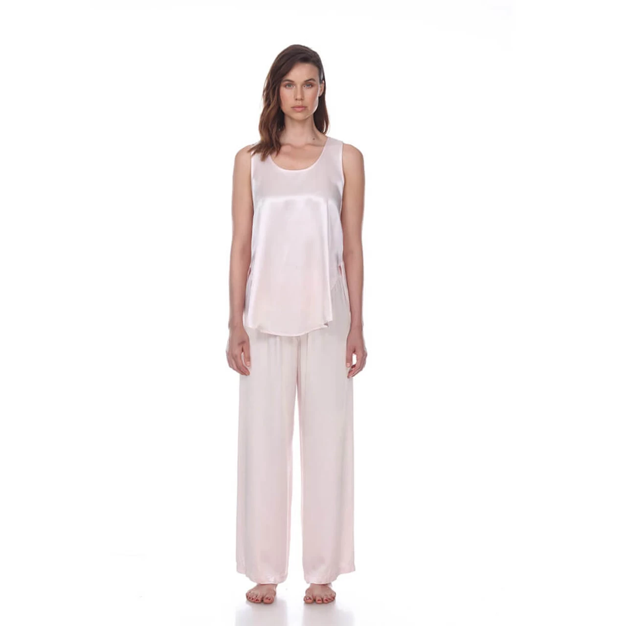 You can achieve elegance with PJ Harlow’s High / Low Scoop Neck Satin Cami. This satin cami features a sleek silhouette and slits on the sides. You can wear it at bedtime but you can easily coordinate it with jeans for an elegant day time look.