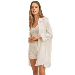 This comfortable shirt dress is so soft and pretty. Lightweight and comfortable, this shirt dress looks great worn on its own or thrown over a sundress!