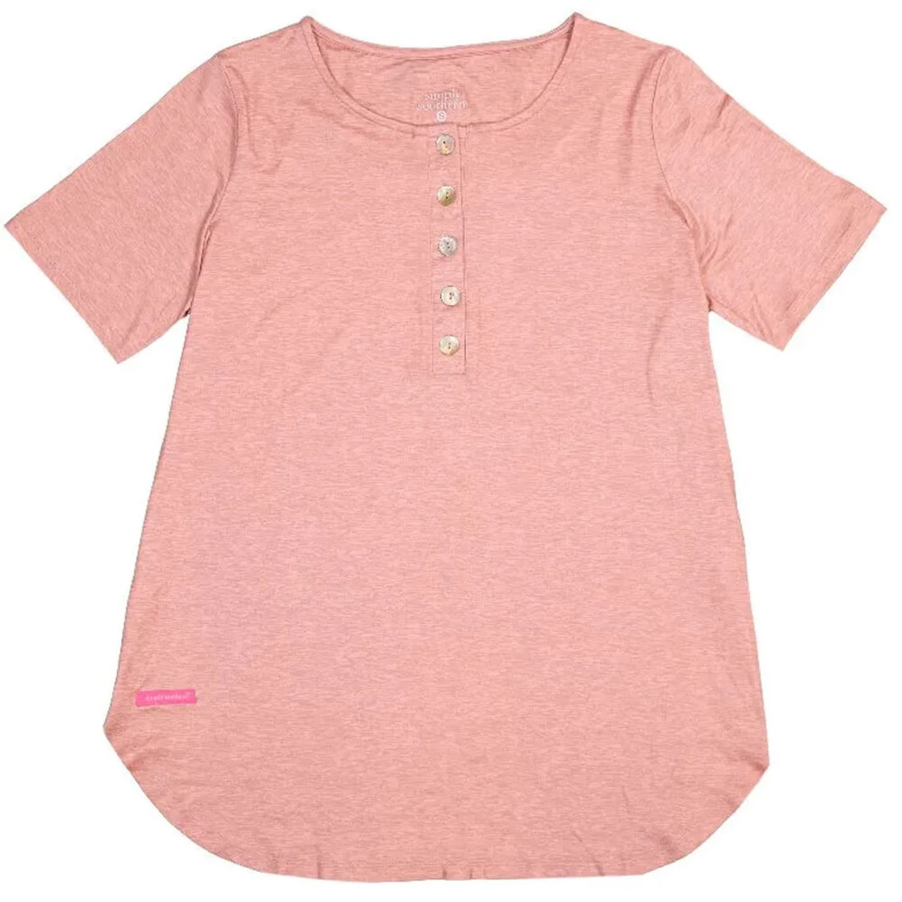 Keep your outfit casual and comfortable with any of these Henley T-shirts. They provide an ultra-soft fabric, short sleeve design, and stylish button accents. Pair any of these tops with shorts, leggings, or jeans.