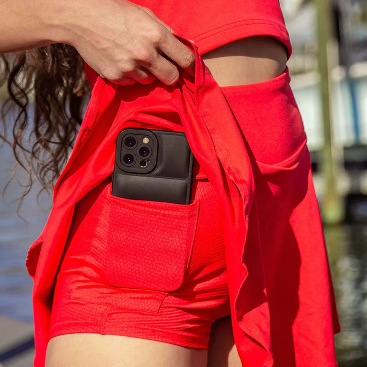 Have fun in this seamless skort with built-in compression brief liner and full circle skirt styling.