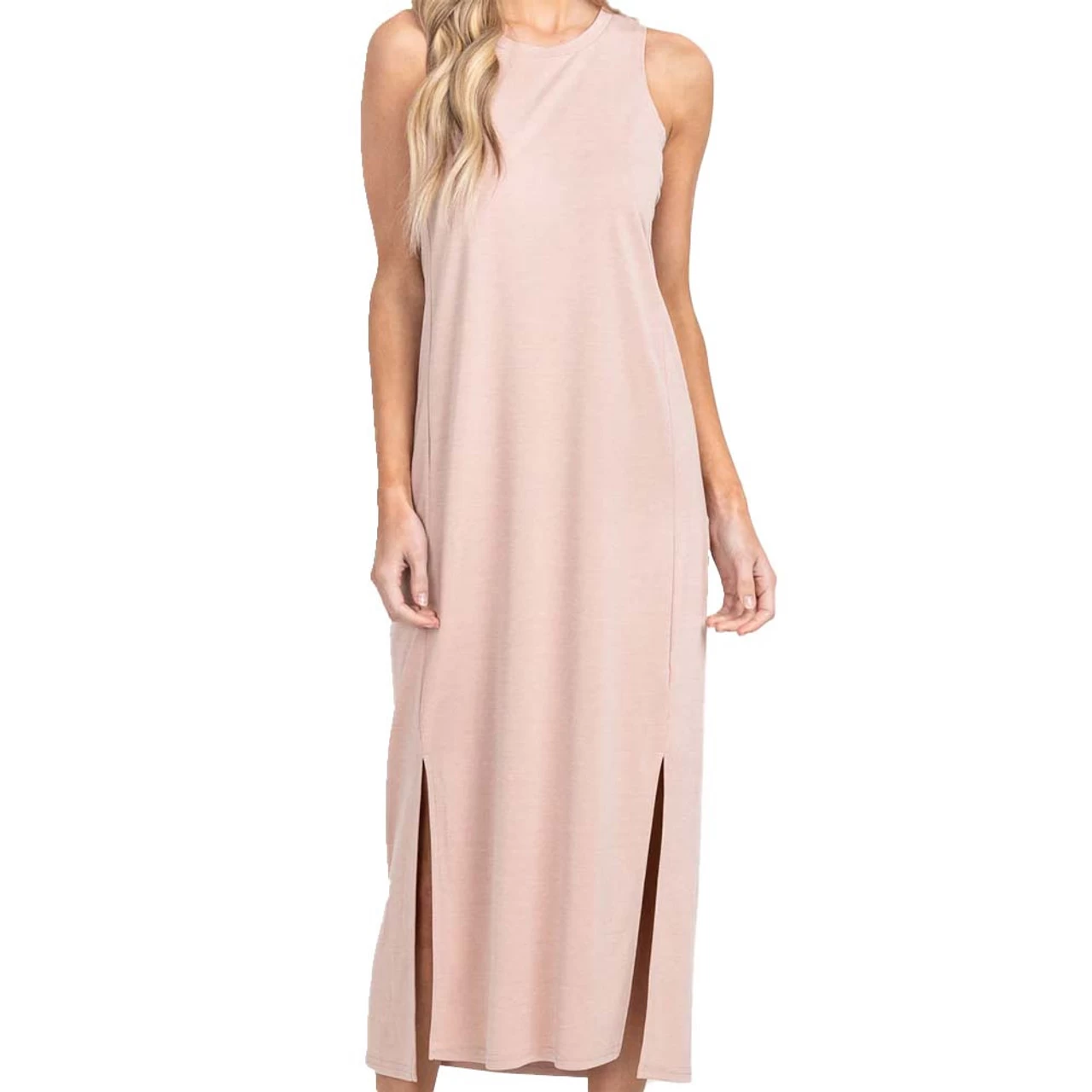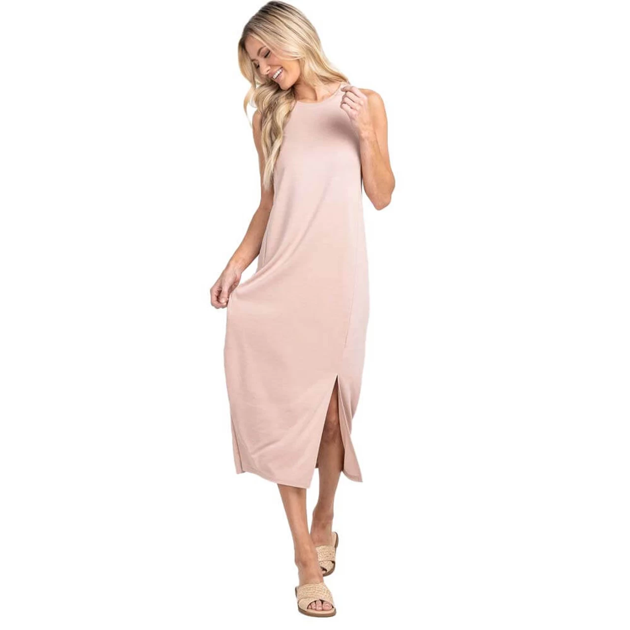 Feel glamourous and protected from breaking a sweat even on those hot summer nights in this midi modal dress. With slimming side panels and front slits for easy movement and a flirtatious look, this is the dress you’ll want to wear out on the town. Pair with your favorite sneakers for a casual look, or put with some comfy sandals for a cute night out look.