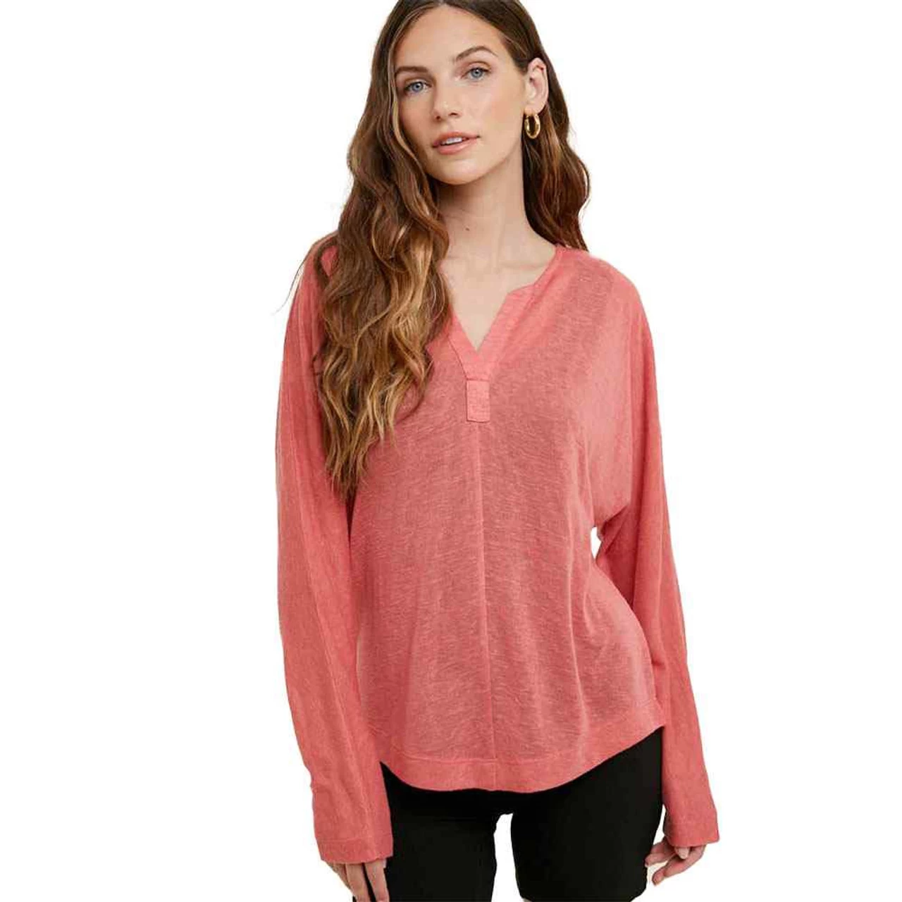 This semi-sheer slub knit top is so cute and comfortable. Lightweight and breathable, this top is perfect for transitioning into spring.