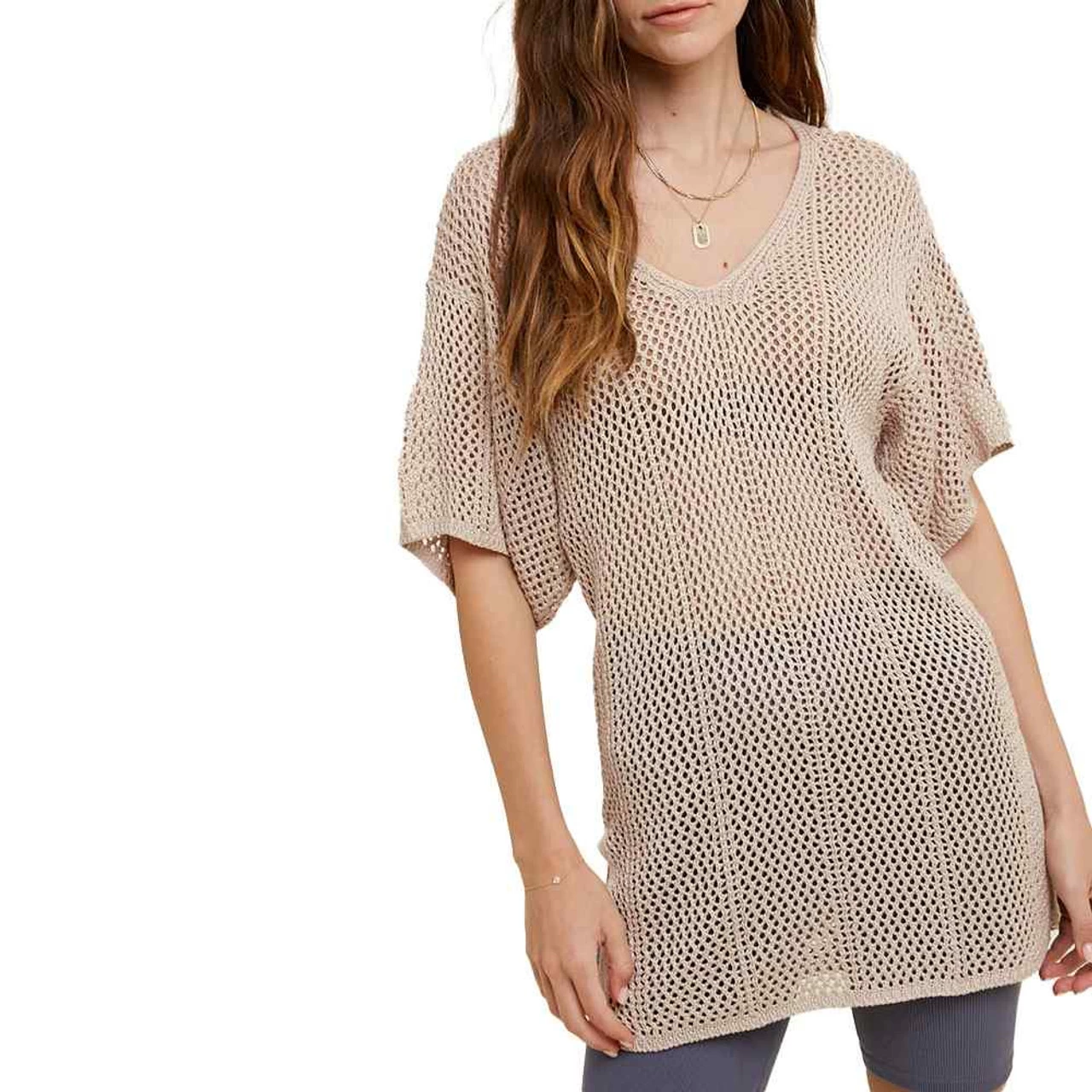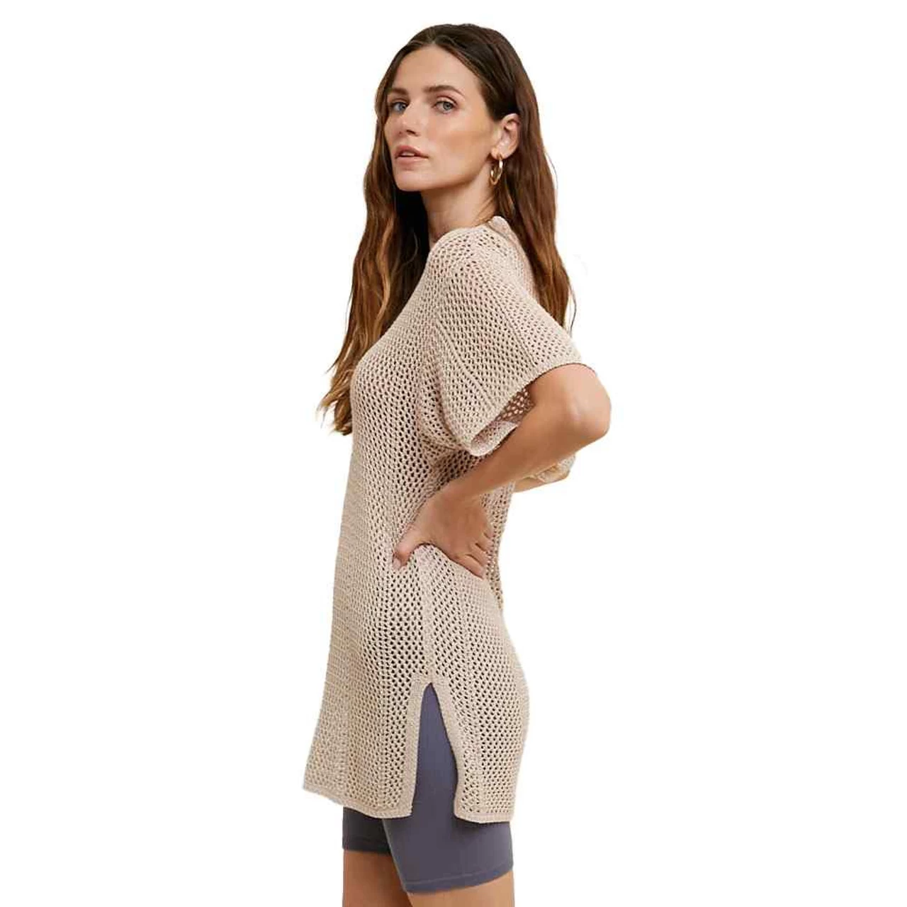 This crochet sweater with side slits is so cute and comfortable. Lightweight and breathable, this is the perfect top for spring and summer.
