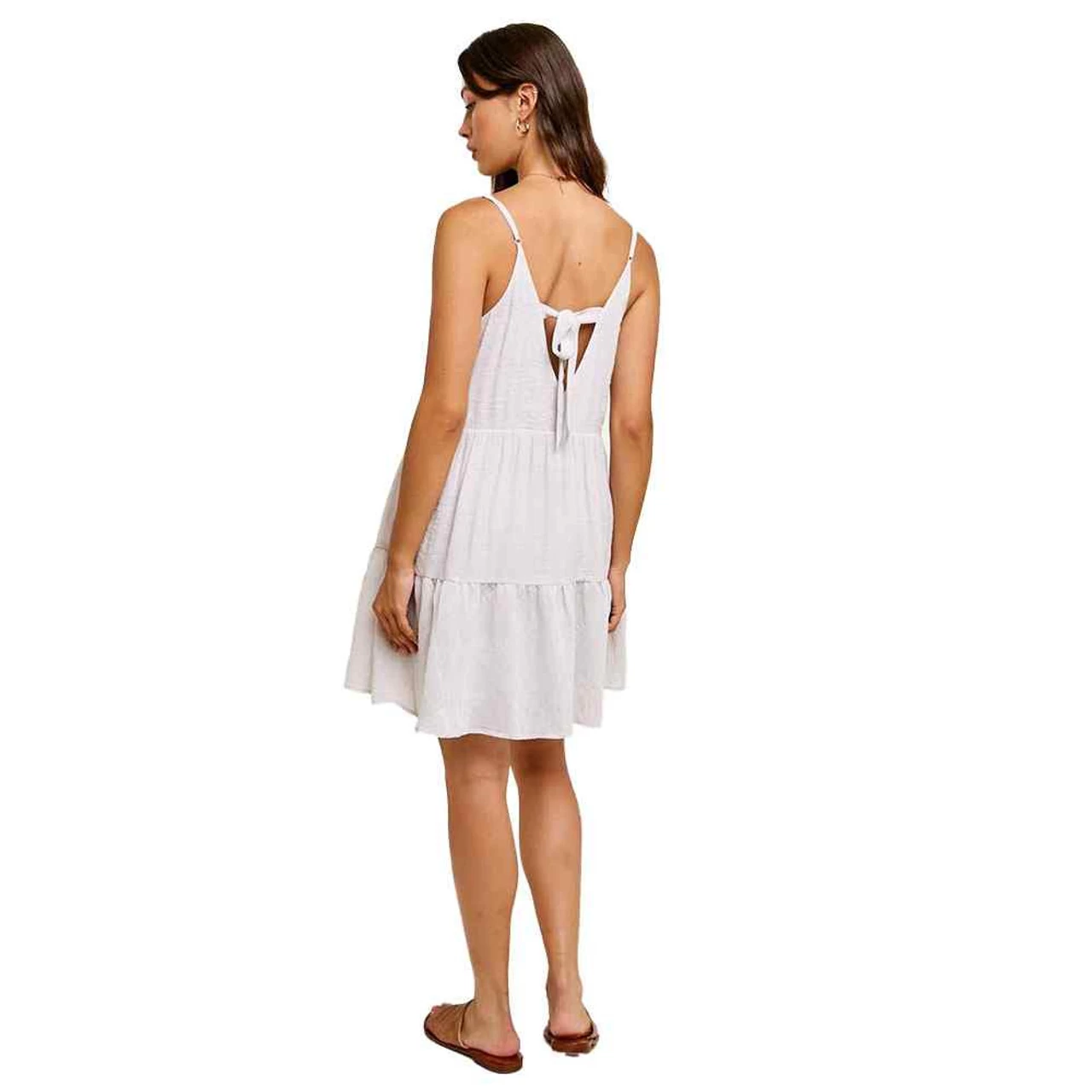 This tiered mini dress with a self back tie detail is so cute and comfortable. Lightweight and breathable, this mini dress is a must have.
