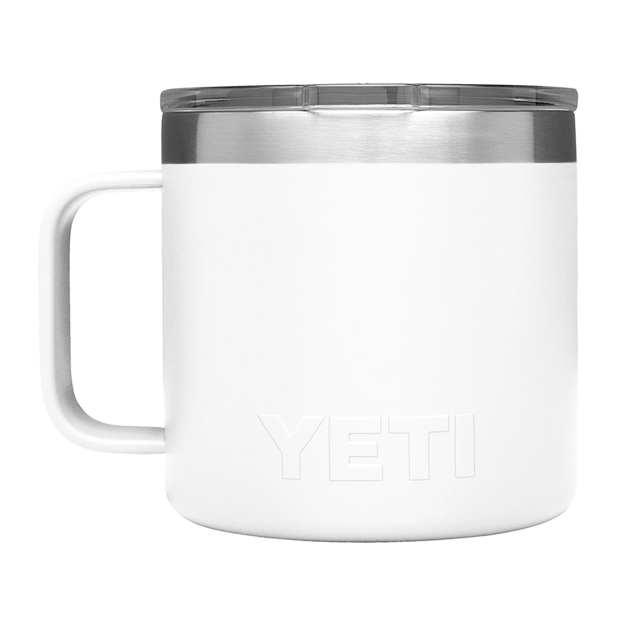 The White Rambler® 14 oz. Mug is the toughest insulated travel mug out there. Unlike traditional camp mugs, Yeti’s mugs are made with a double-wall vacuum-insulated body the protects hands while keep cold items cold and hot items hot.
